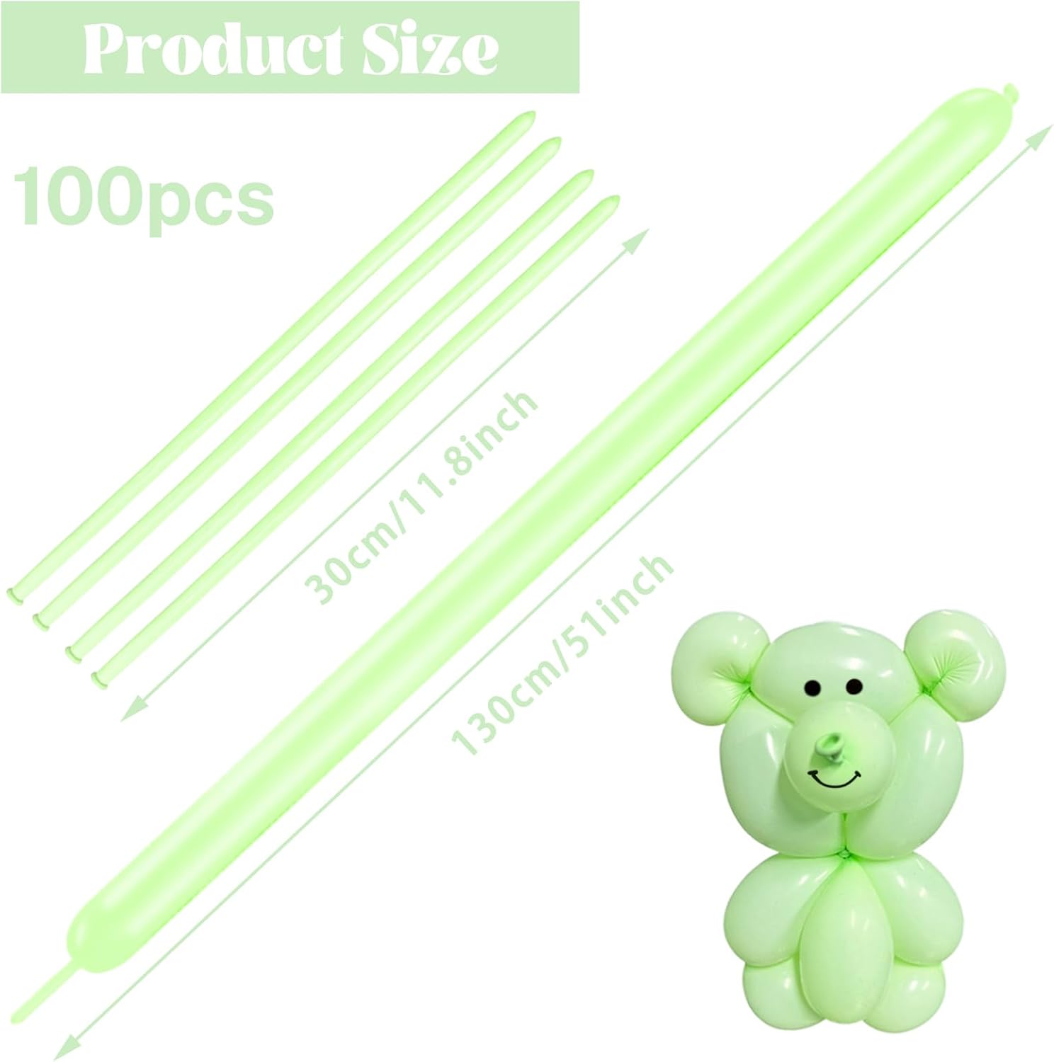 260 Long Balloons 100 Pack Pastel Green Twisting Animal Balloons Thickening Latex Modeling Long Magic Balloons for Animal Model Weddings Birthdays Festival Party Decorations