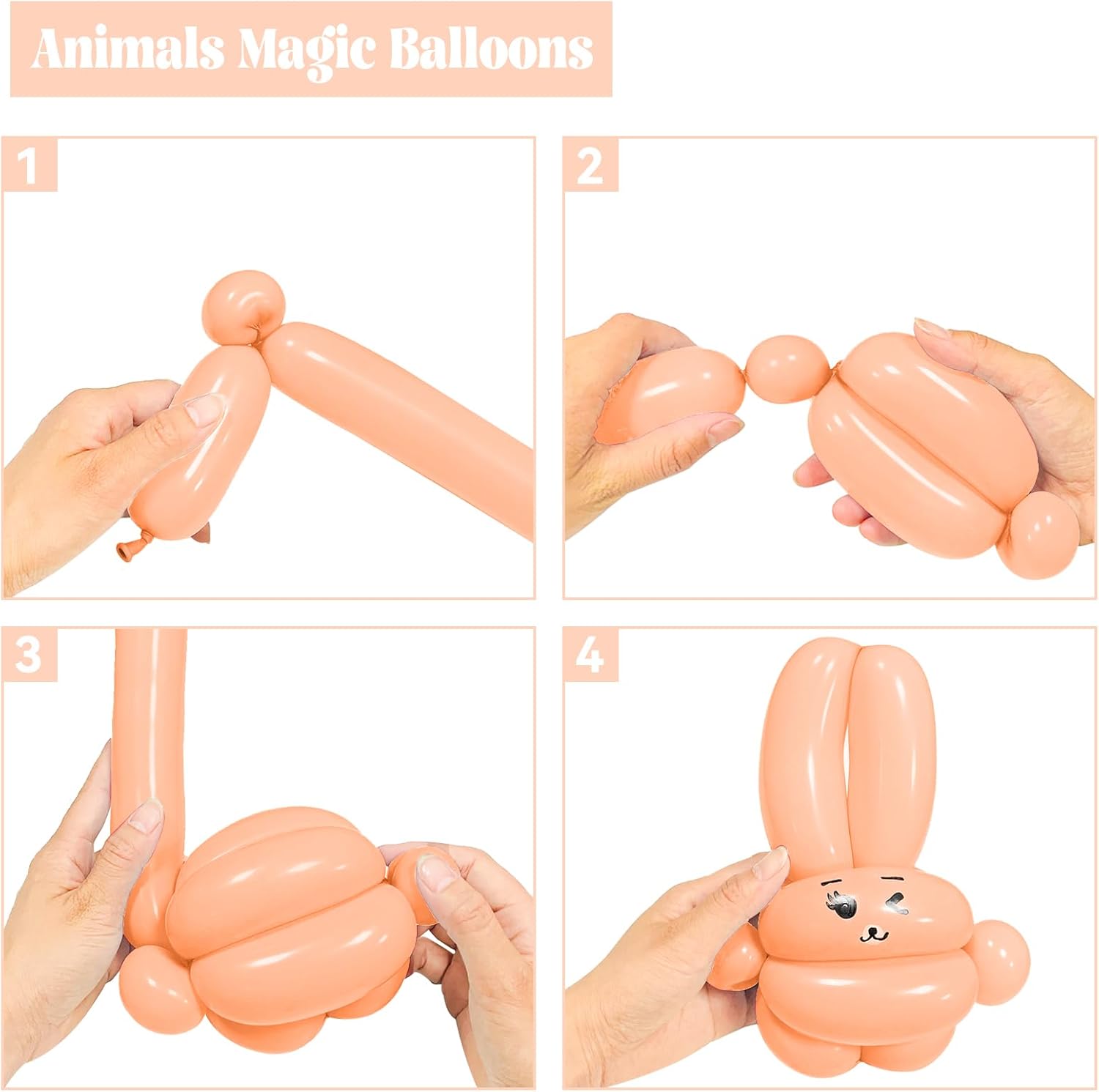 - 【DIY Magic Balloons】You will make any animals with the long modeling balloons,Very fun and interesting, Through makeing the peach long balloons into different shape(dog, Spider, bear, or any other things), It can greatly stimulate the creative thinking imagination of children.