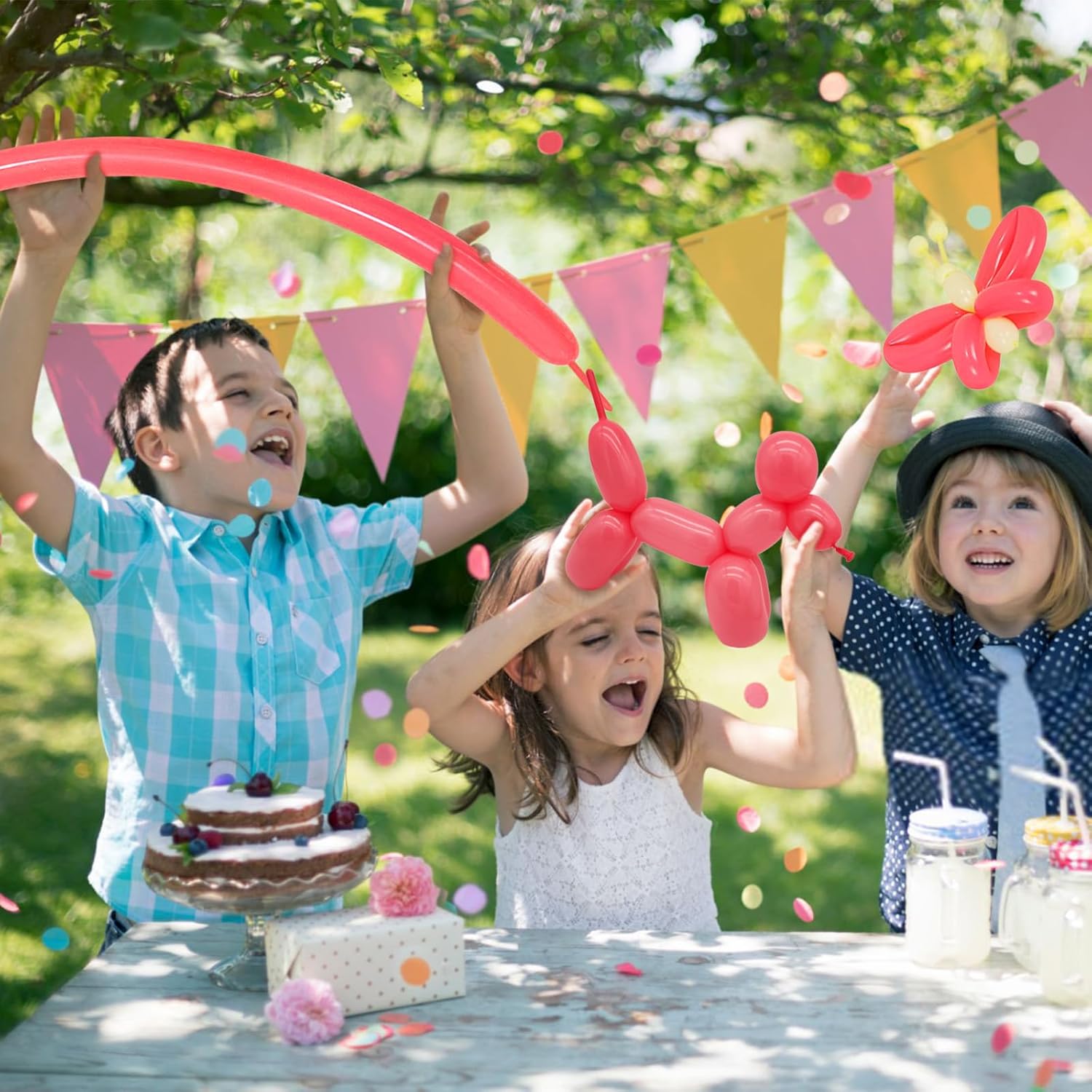 - 【DIY Magic Balloons】You will make any animals with the long Red modeling balloons,Very fun and interesting, Through makeing the red long balloons into different shape(dog, Spider, bear, or any other things), It can greatly stimulate the creative thinking imagination of children.