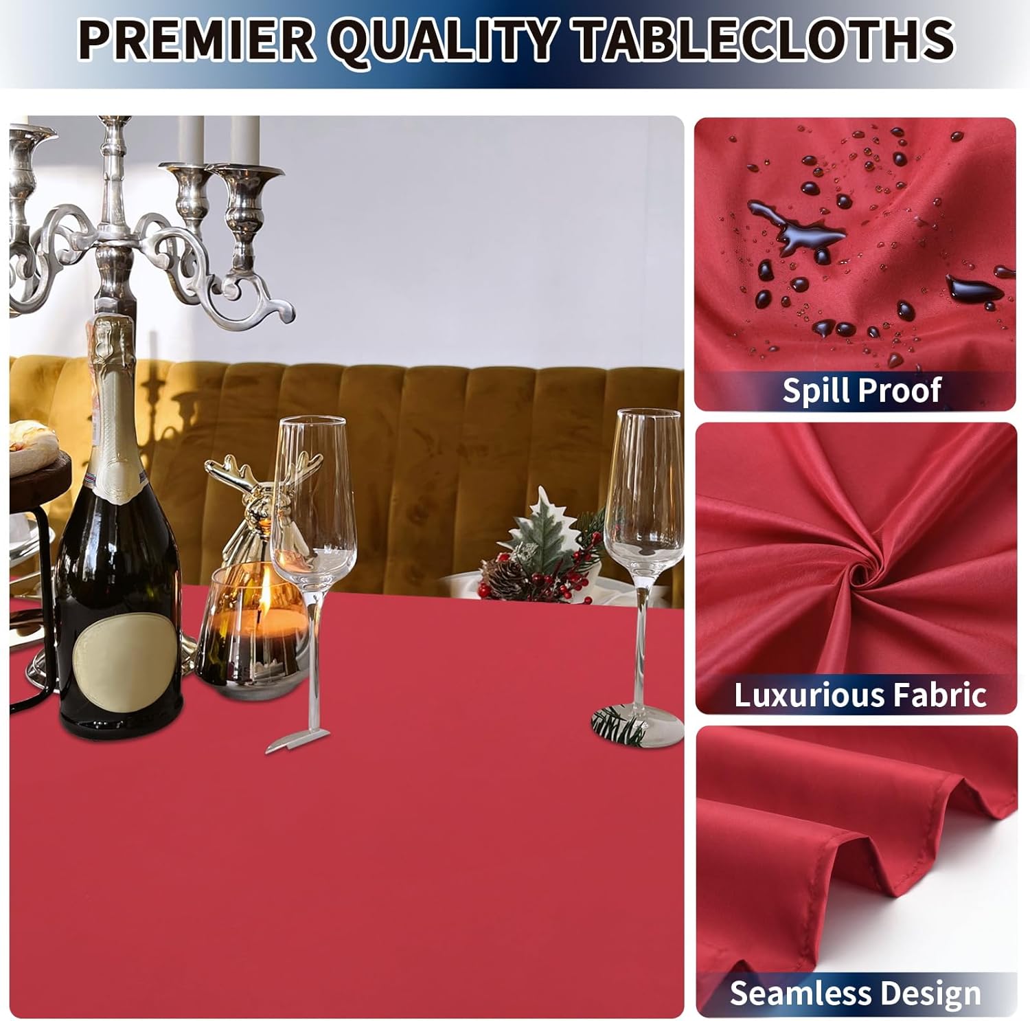 - Multifunctional Table Linens: Our stain-proof tablecloths come in a variety of colors and sizes, which make them perfect for wedding tables, banquet tables and party tables, or you can spread them on backyard bench to make a chic picnic table for sweet celebrations and special events like reunions, receptions, graduations, anniversaries and casual gatherings.
