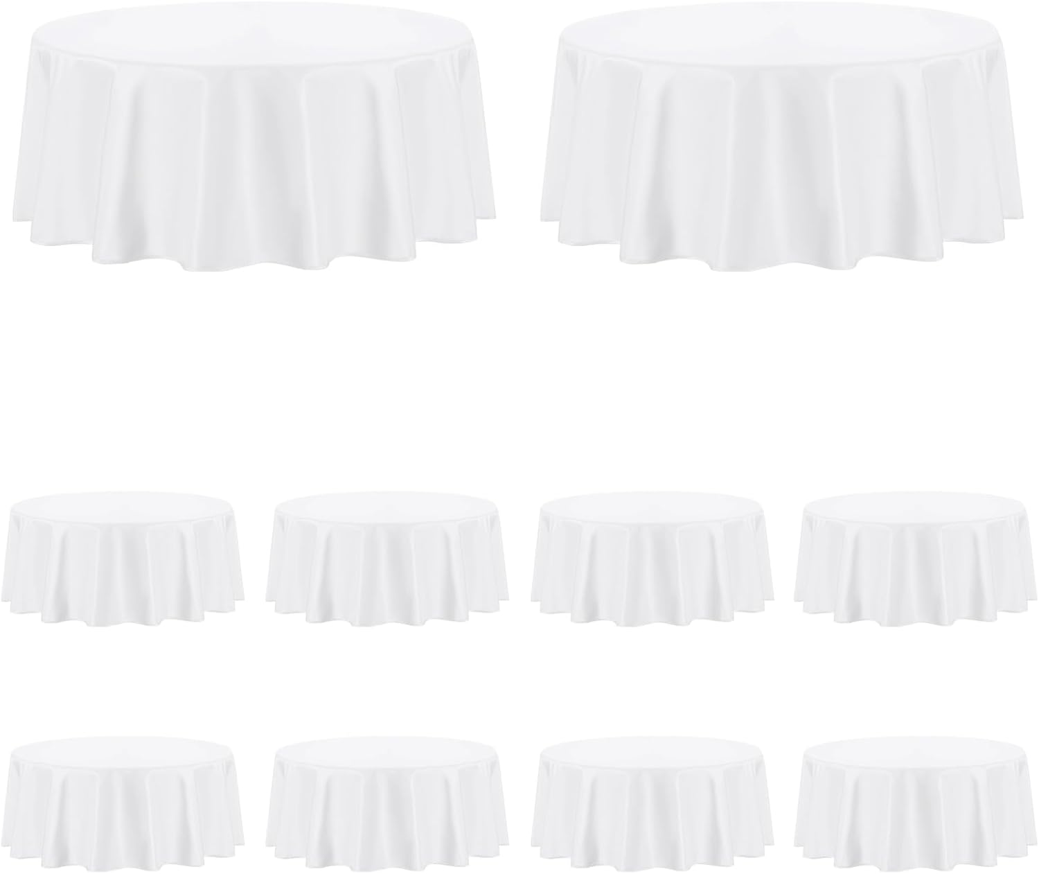 PureFit 10 Pack Round White Table Cloths 70 Inch for Round Tables, Stain and Wrinkle Resistant Table Linens for Home Use, Wedding, Party, Banquet and Camping