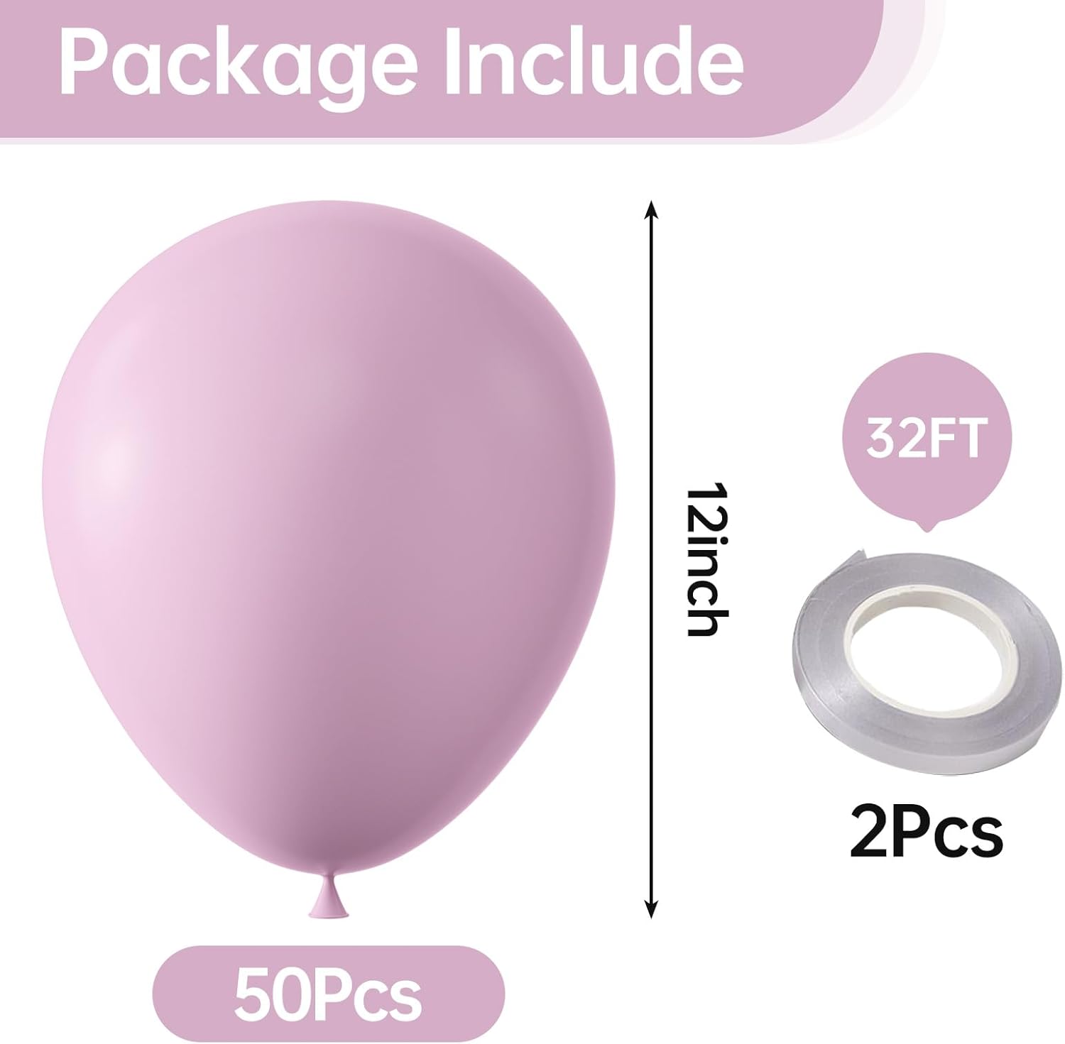 - Value Pack-The balloon kit includes 50 pack 12-inch balloons and 2pcs ribbon(32ft).