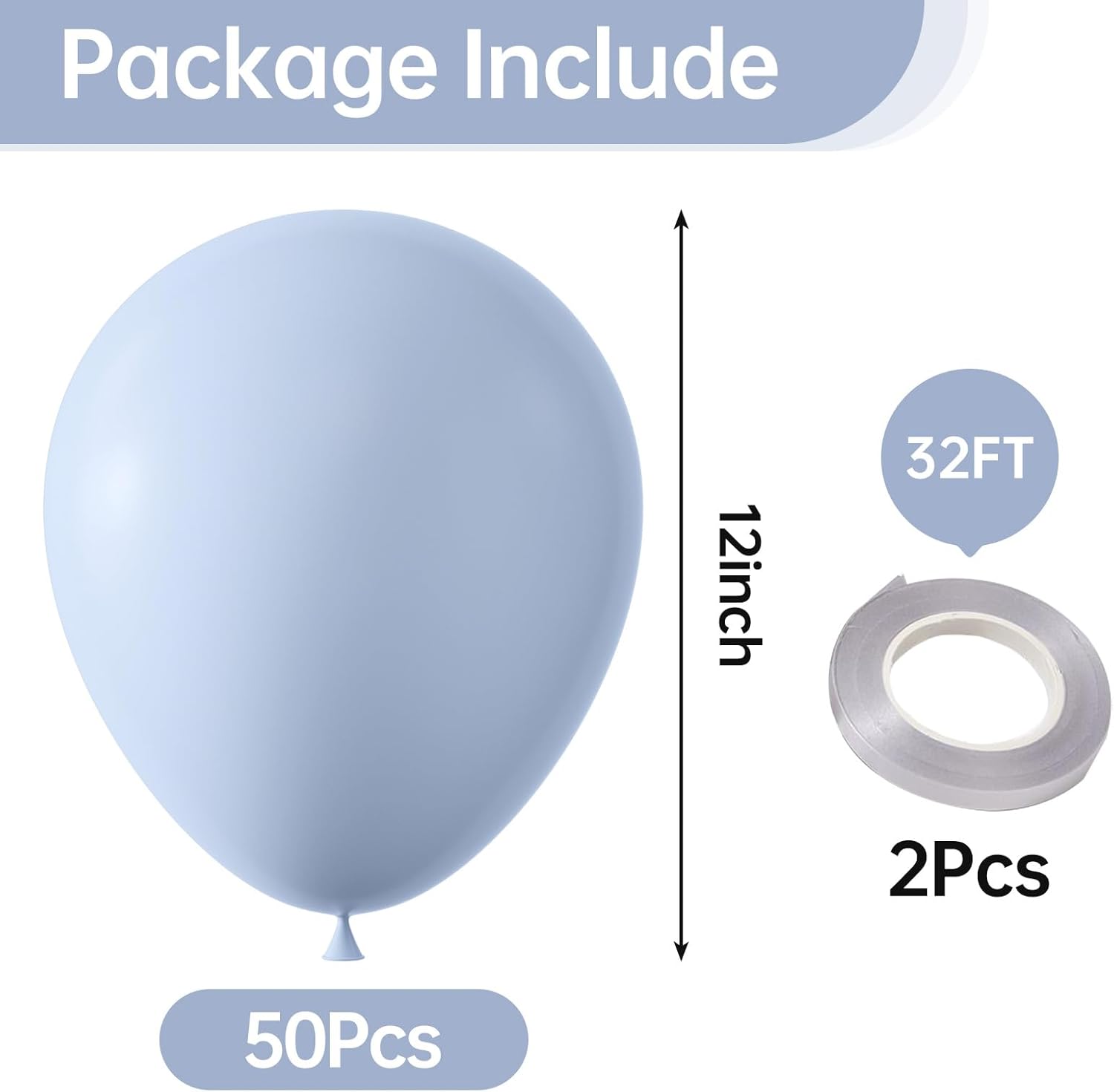 KALOR 12 Inch Pastel Blue Balloons, 50 Pcs Latex Helium Macaron Balloons for Kid's Birthday Party, Baby Shower, Wedding, Graduate Party Decorations