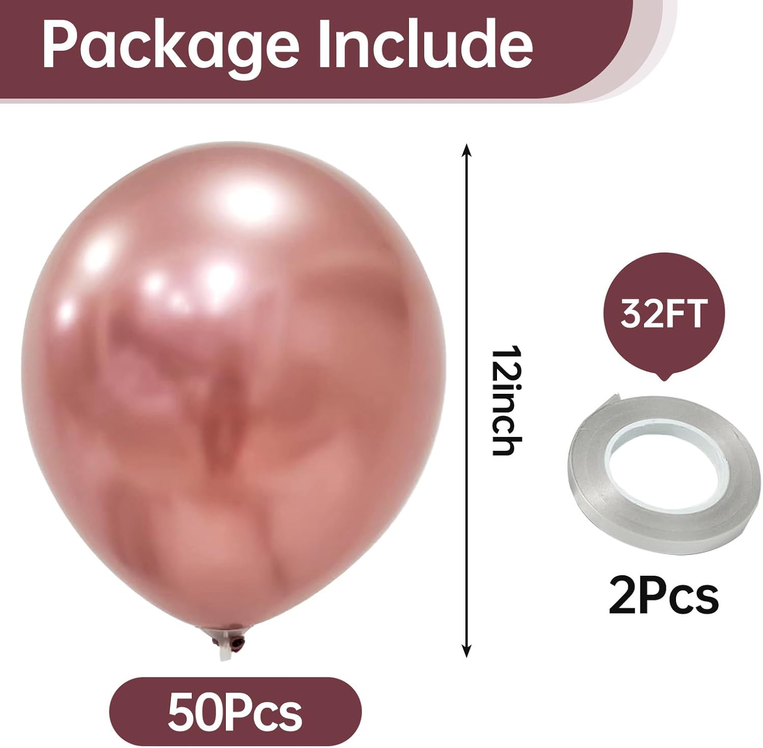 KALOR 12 Inch Metallic Rose Gold Balloons, 50 Pcs Latex Helium Metallic Balloons for Kid's Birthday Party, Baby Shower, Wedding, Graduate Party Decorations