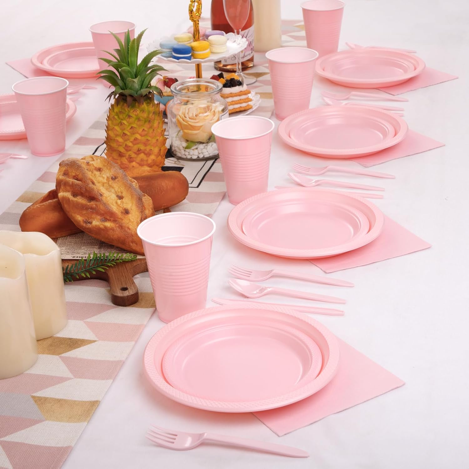 - Premium Quality: Our pink disposable plates are designed to not fold or tear and strong enough to hold a full plate of food. Our party cups with thickened treatment do not leak.Our pink luncheon napkins absorb water well and won't fade.These pink plates and napkins party supplies will make an impression for our guests in Cocktail party.