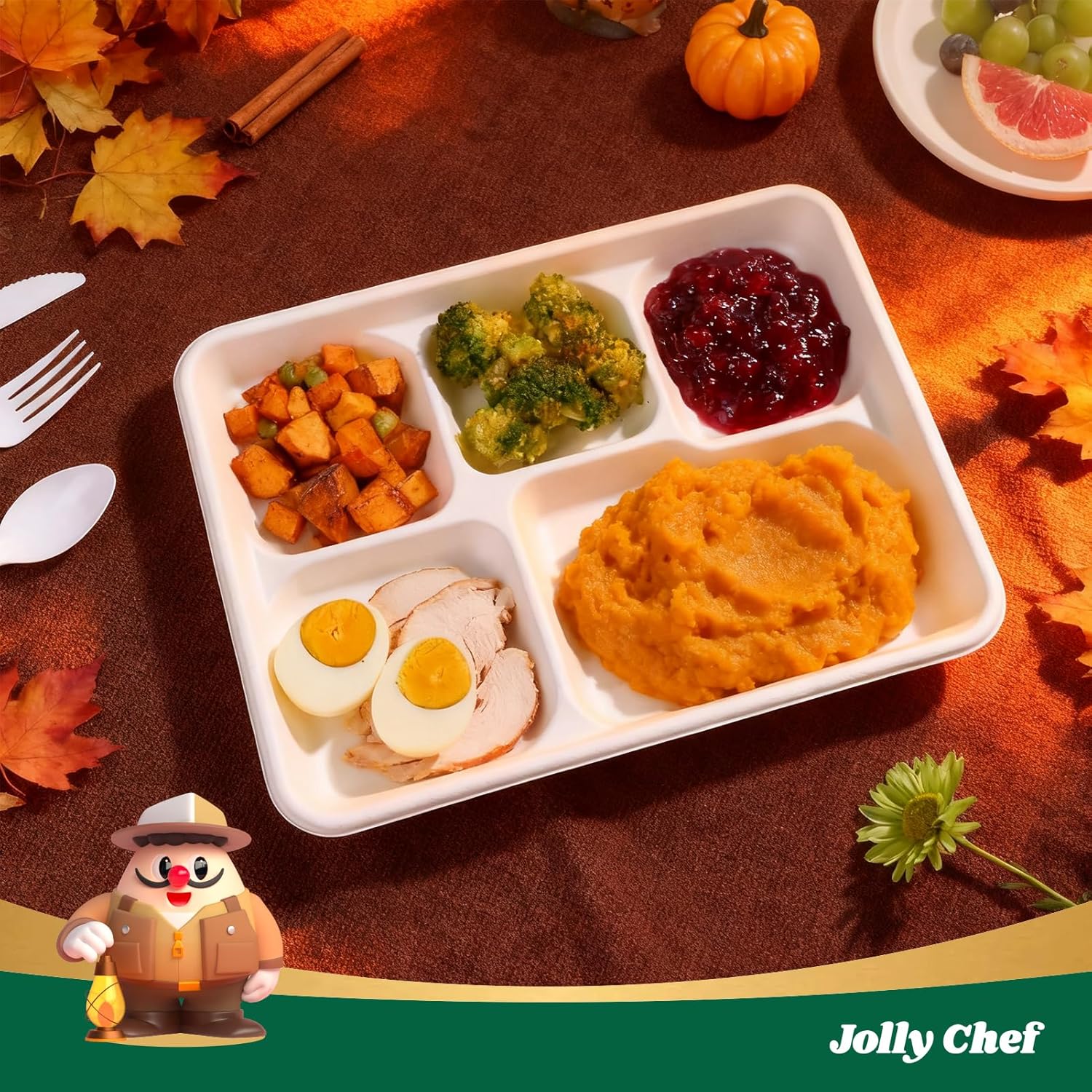 JOLLY CHEF Compostable ๐ฑ Compartment Paper Plates ๐ญ๐ญ * ๐ด ๐ถ๐ป๐ฐ๐ต [๐ญ๐ฌ๐ฌ ๐ฃ๐ฎ๐ฐ๐ธ] Heavy Duty White Divided Disposable Plate Eco-Friendly Biodegradable Food Tray for Party Lunch Thanksgiving Day