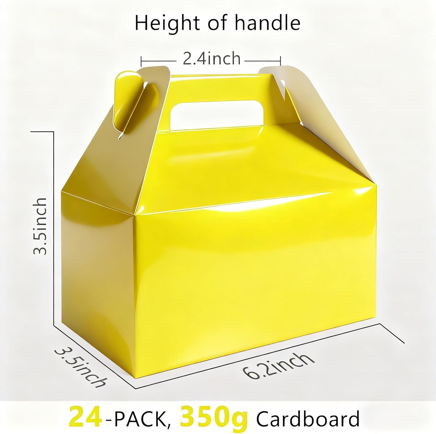 XAGLVV 24 Pack Yellow Gable Boxes with Handles 6.2x3.5x3.5 Inch Paper Party Favor Gift Box for Summer Parties Kids Birthdays Friendship Events Sunshine Themes