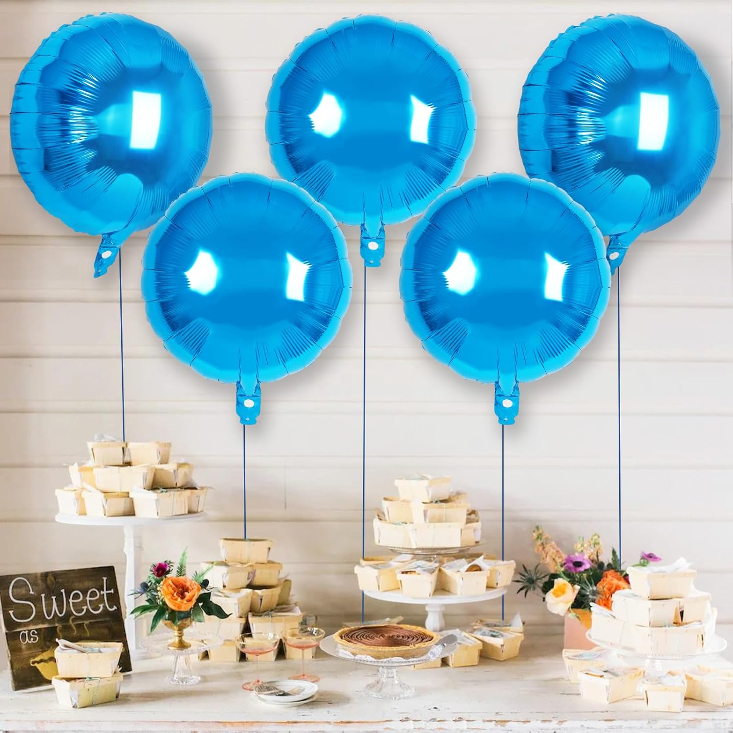 - Included Components : 20 pcs Round Foil Balloons, 1 roll Blue Ribbon, Straw