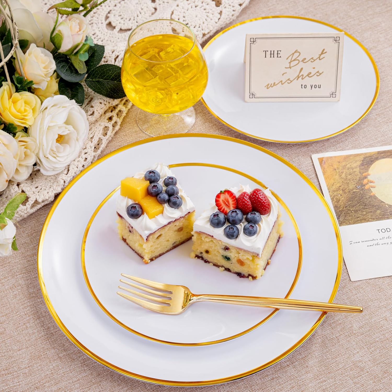 - Chic Design:The these gold plastic white plates with gold rim elevate the look of any occasion, whether formal or casual,adding a touch of sophistication.