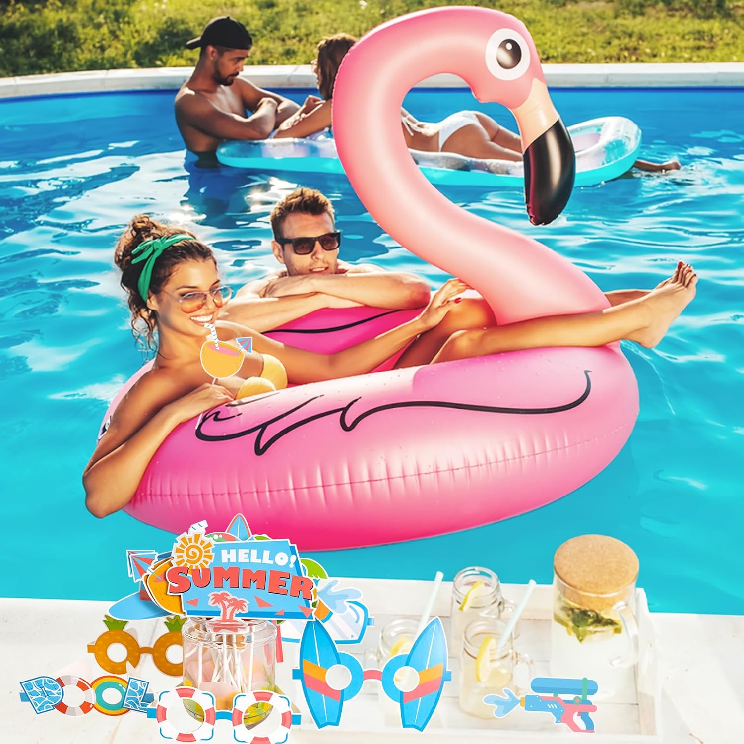 - Variety of Designs: From sunglasses and flip flops to tropical drinks and beach balls, our set includes a wide range of colorful and whimsical props to suit any beach or pool party theme.