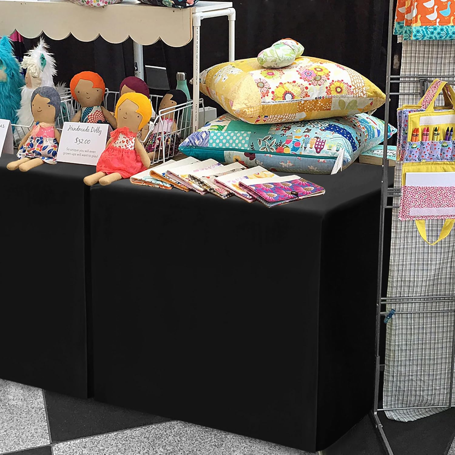 HolidayIdeas 2 Pack Square Fitted Table Covers - 34 x 34 Inch - Fabric Table Clothes Versatile Tablevloths for Parties, Holiday Dinner, Trade Show, Vendor Stand (Black)