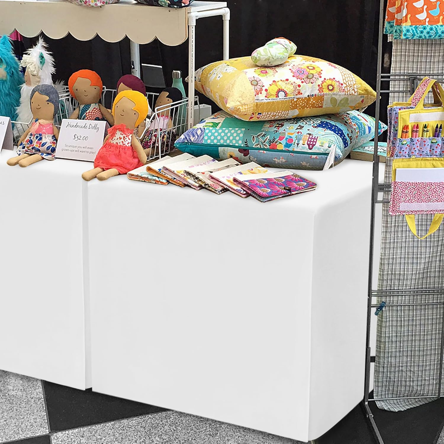 HolidayIdeas 2 Pack Square Fitted Table Covers - 34 x 34 Inch - Fabric Table Clothes Versatile Tablecloths for Parties, Holiday Dinner, Trade Show, Vendor Stand (White)