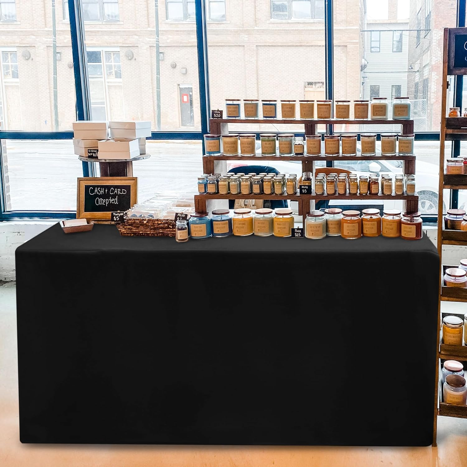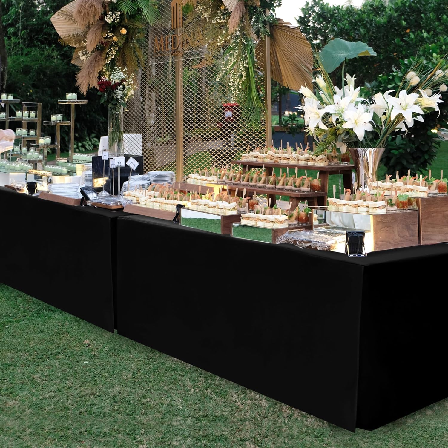 HolidayIdeas Fitted Table Covers for 6 Foot Tables - 72 x 30 Inch - 2 Pack Rectangle Table Clothes Versatile Fabric Table Cover for Folding Table, Parties, Holiday Dinner, Trade Show (Black)