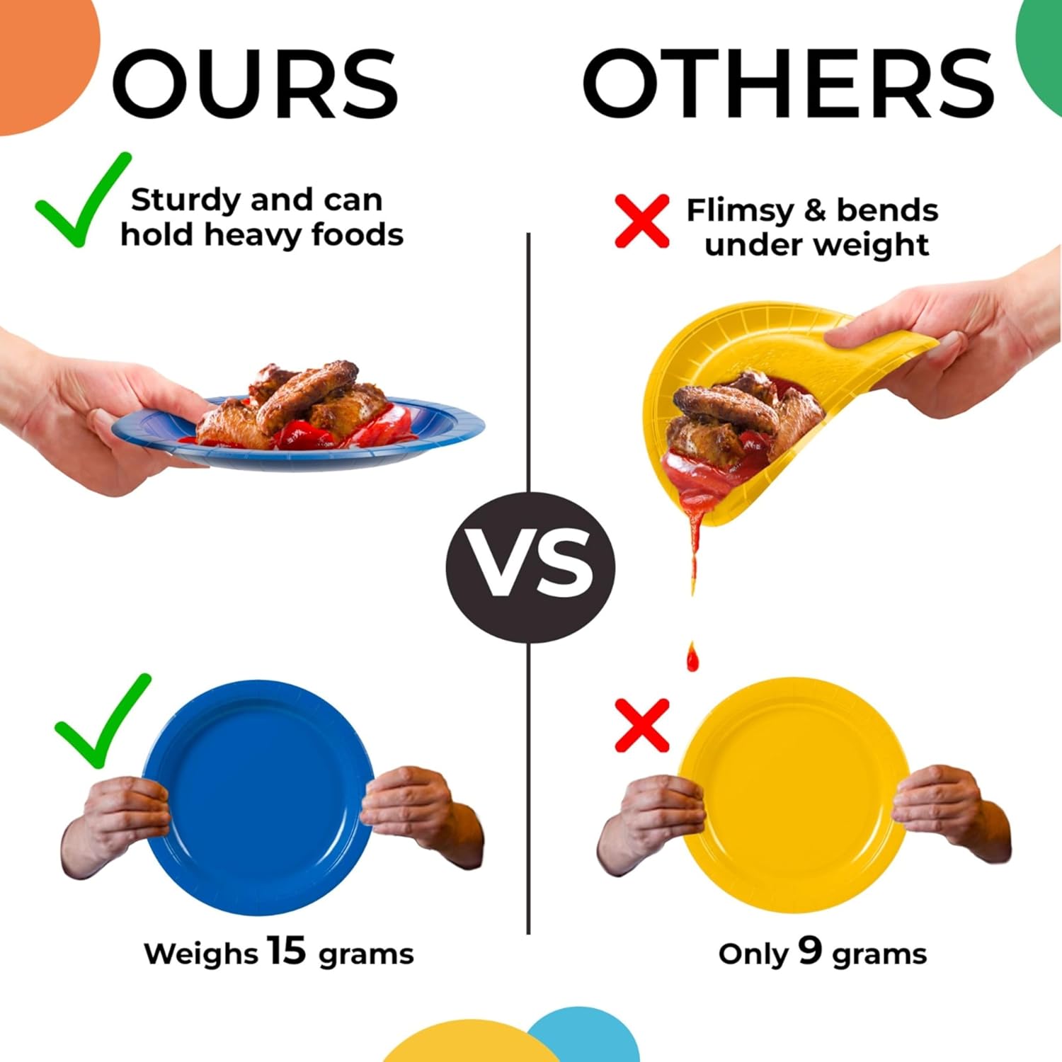 - Unparalleled Strength and Durability - These premium quality Turquoise Paper Plates are built strong. With their superior strength, you no longer need to worry about your plates buckling under the weight of your food. Enjoy a stress-free dining experience with these robust and reliable paper plates that outperform other flimsy alternatives.