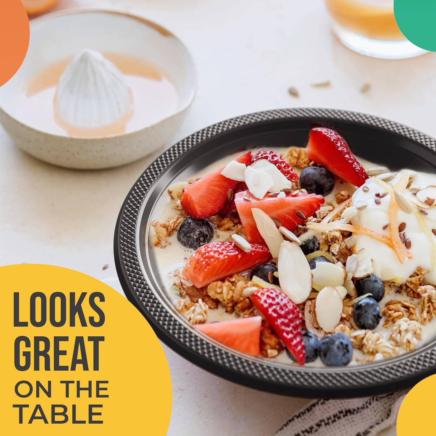 - 12 oz Black Plastic Bowls 50 Pack Disposable Bowls, Premium Quality Plastic Bowls Disposable, Plastic Cereal Bowls, Microwavable Bowls, Disposable Soup Bowls For Parties, Dinners & More Exquisite