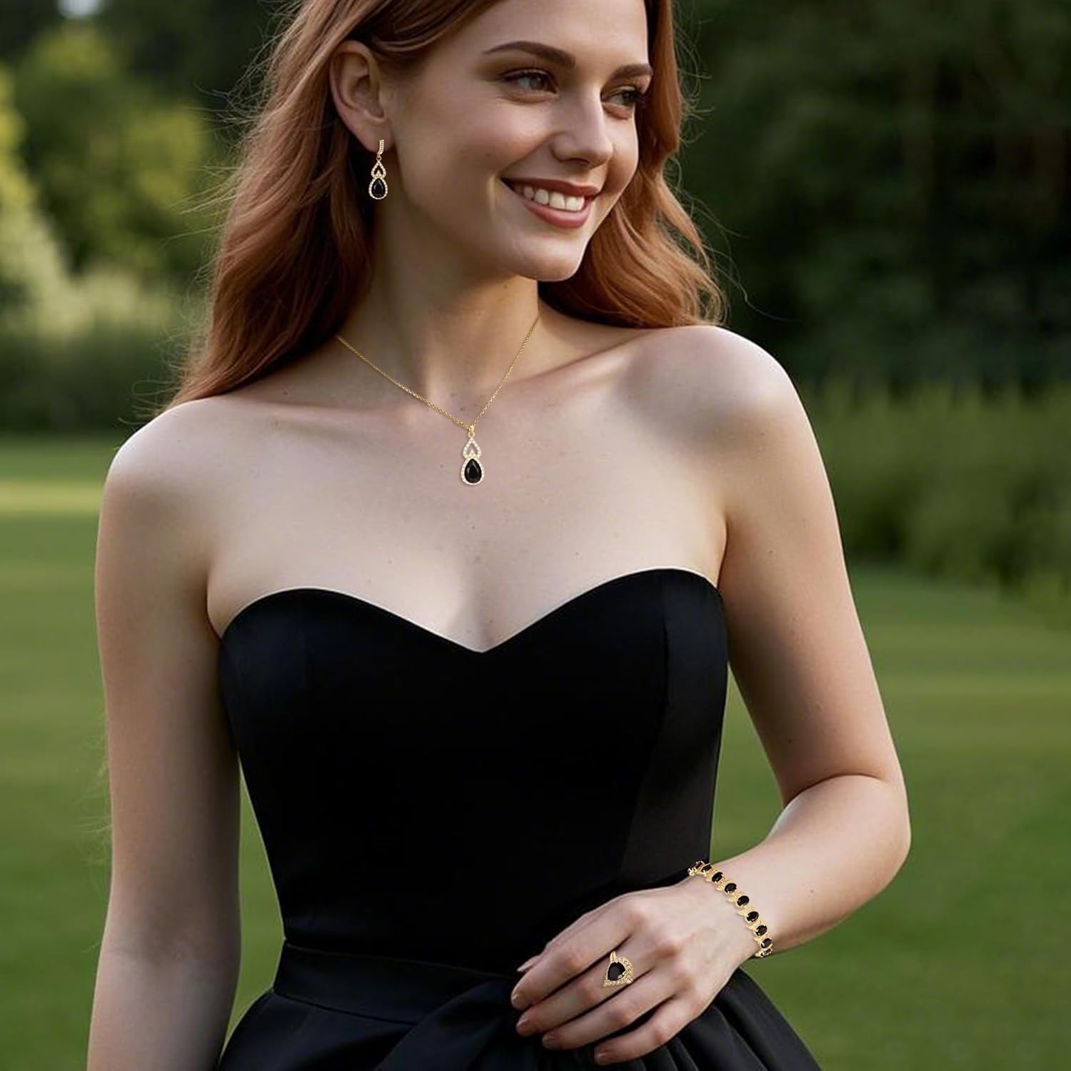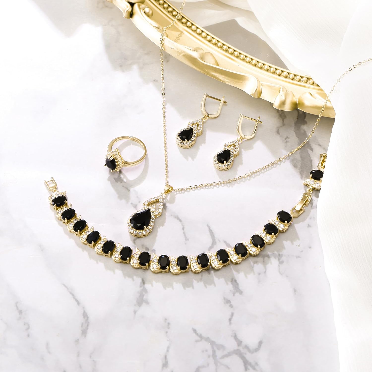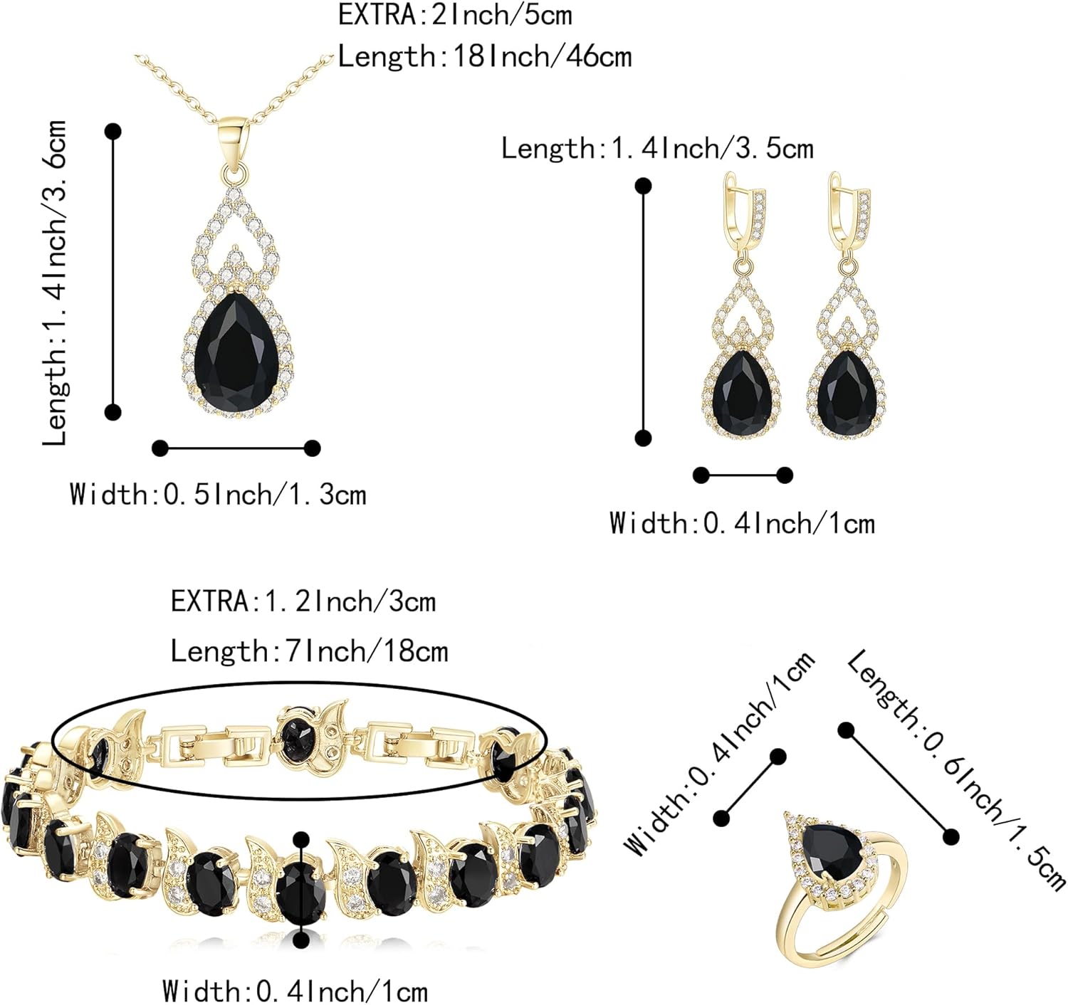 - ♥ Specifications & Size ♥: Necklace: Pendant Size:1.4*0.5in; Chain Length (Adjustable): 18-20in. Earrings : 1.4*0.4 in.Bracelet Length:7-8.2in,Width:0.4in;Ring:0.6*0.4in. Total Weight:35.9g.