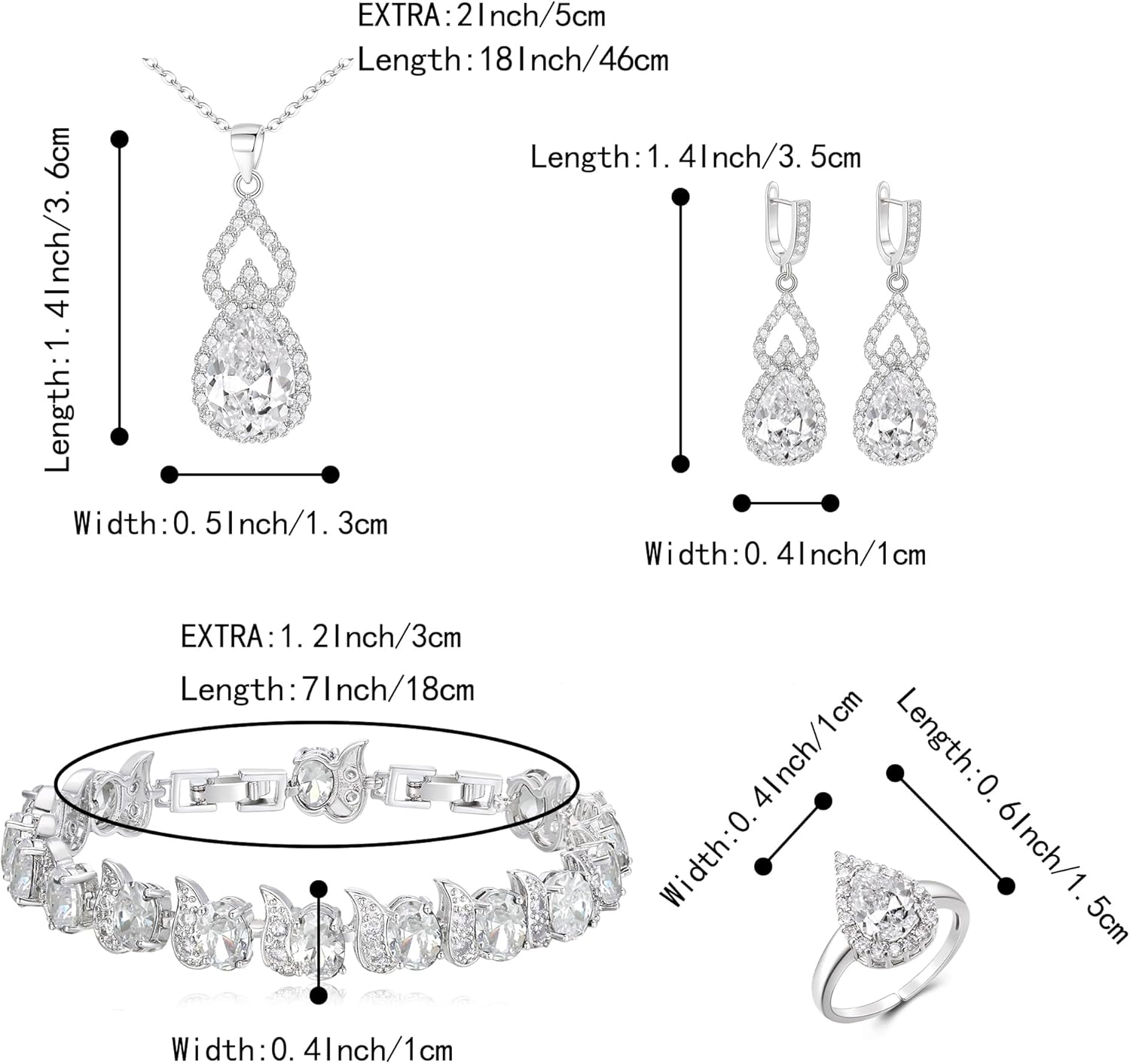 BriLove Wedding Jewelry Set for Women Bride Bridesmaid, Gorgeous Cubic Zirconia Teardrop Necklace Earrings Bracelet Adjustable Ring Jewelry Gift for Birthday/Anniversary/Mother’s Day