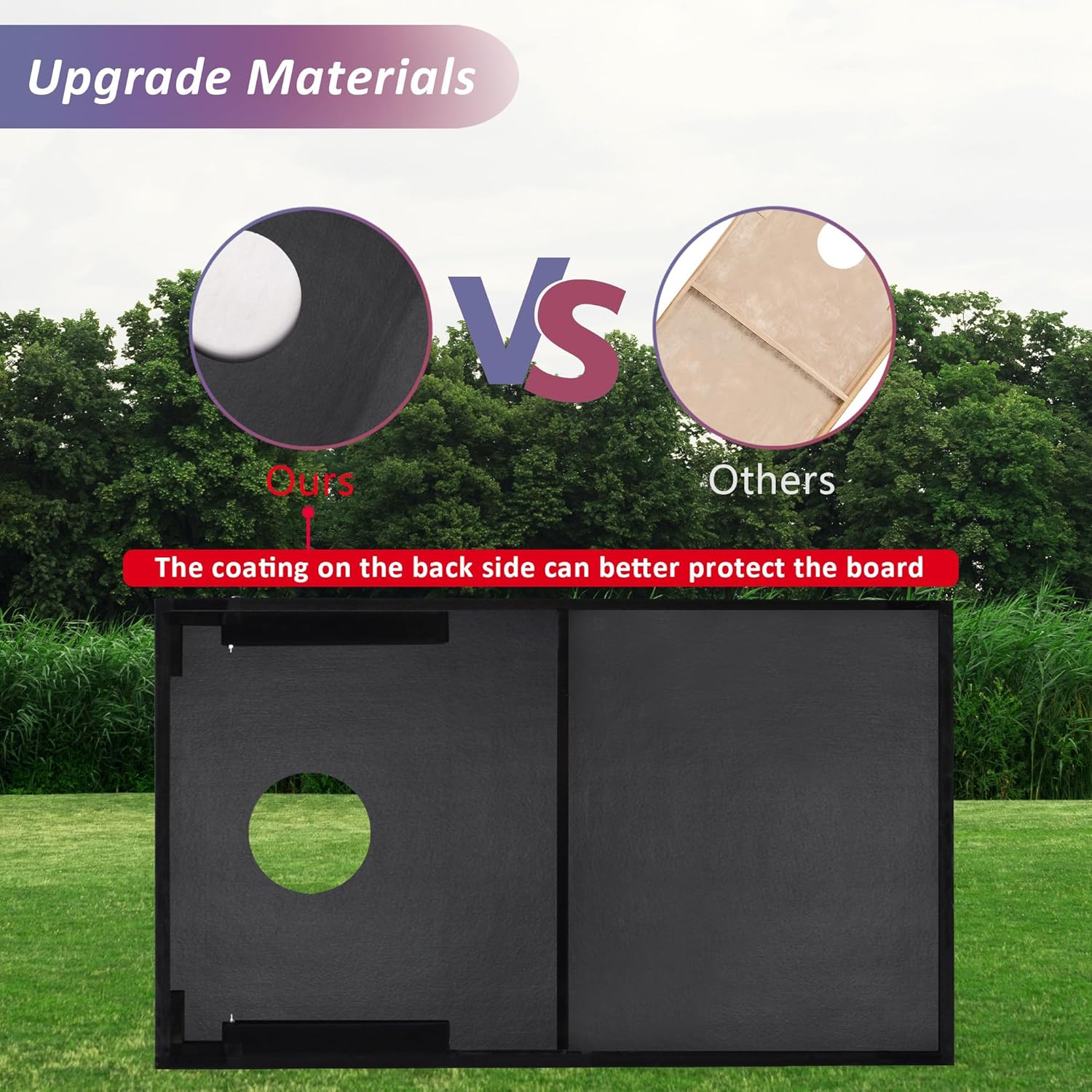 - [Sturdy Construction] - In order to provide a better playing experience, all official cornhole sets added extra wooden strips on the back of the board as support, and added anti-vibration gaskets to the bottom of legs, the double protection can better resist the impact of the bean bag during play games and family tournaments