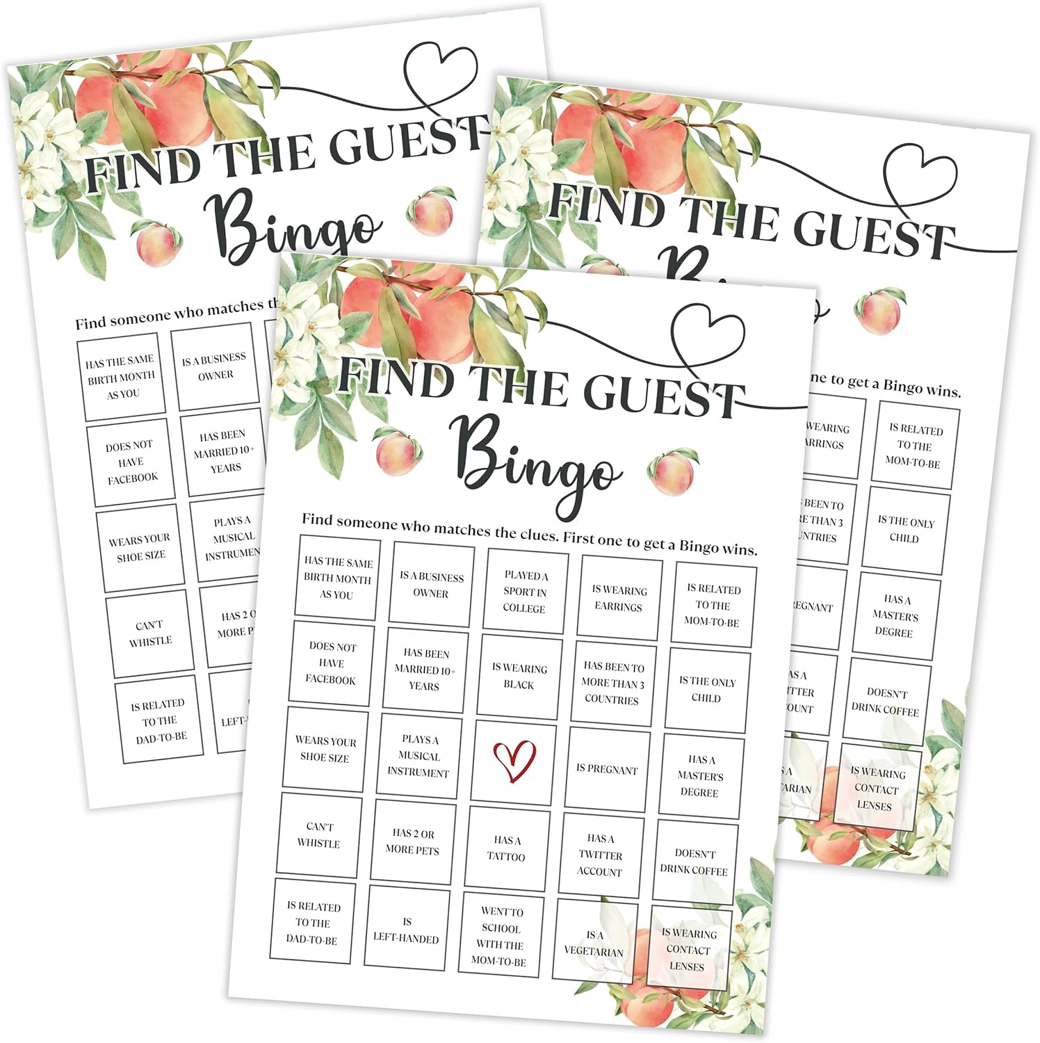 White Floral Peach Find The Guest Bingo Game - Pack of 30 Gender Neutral Boy or Girl Cards - Fun Baby Shower Game and Activity - FA31