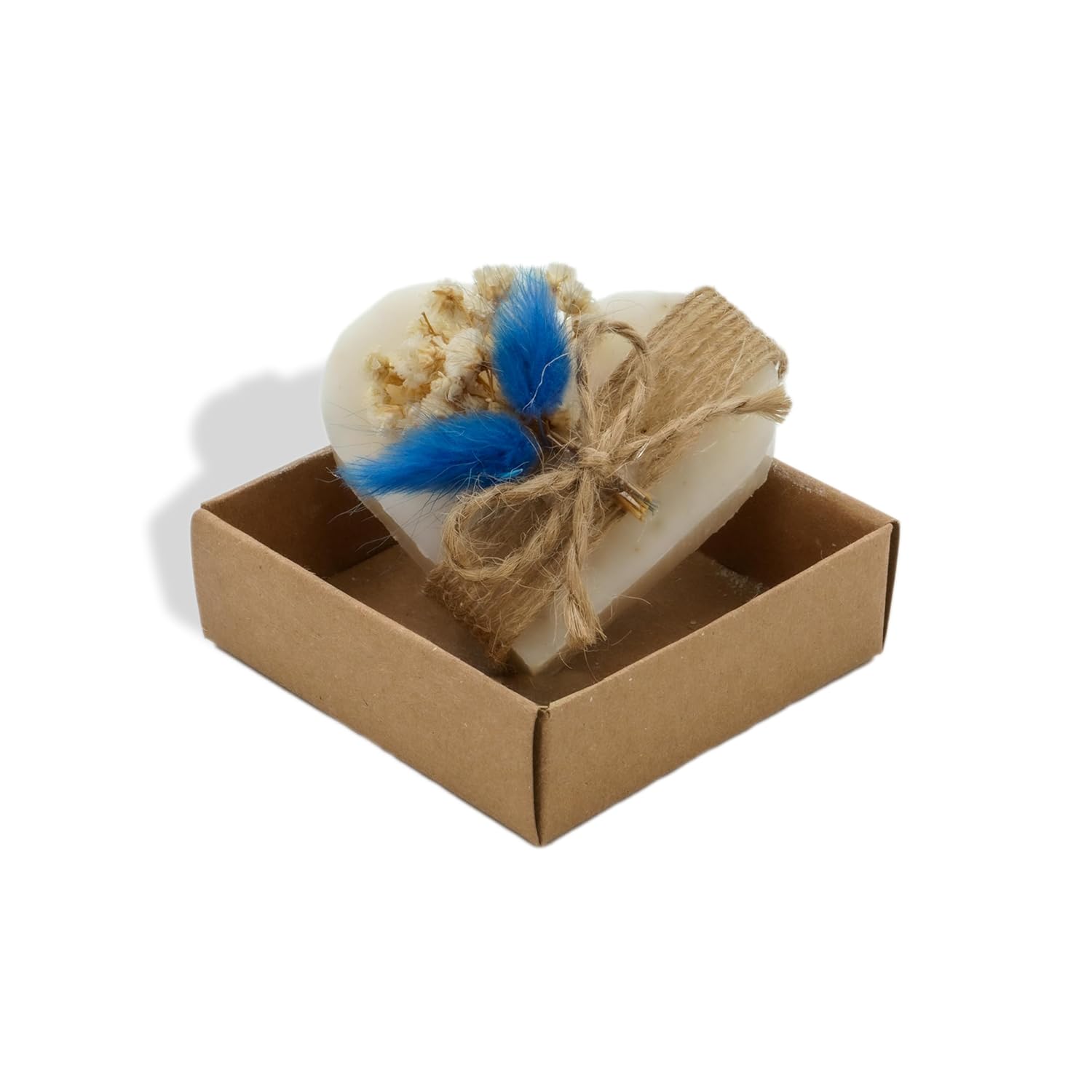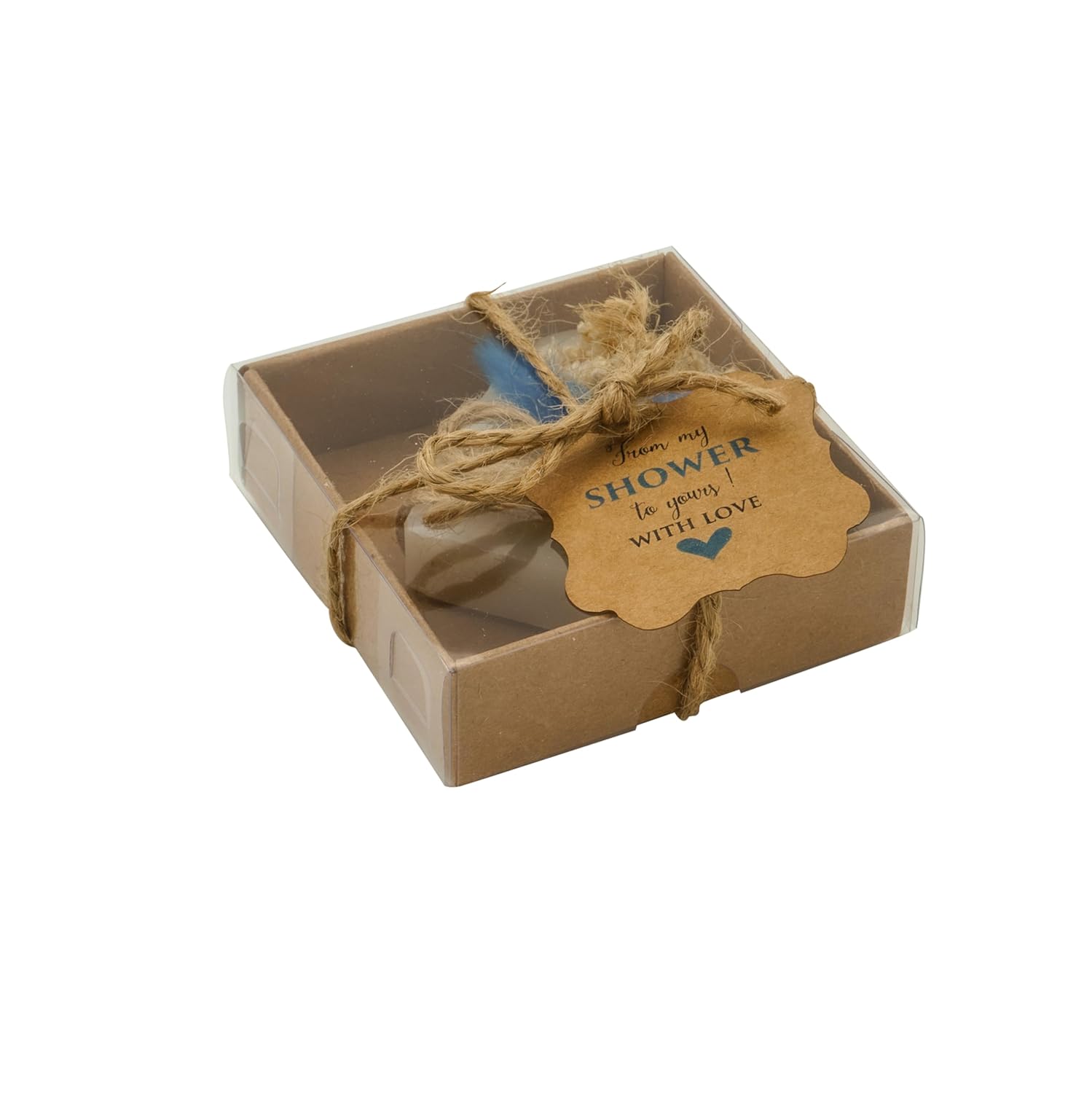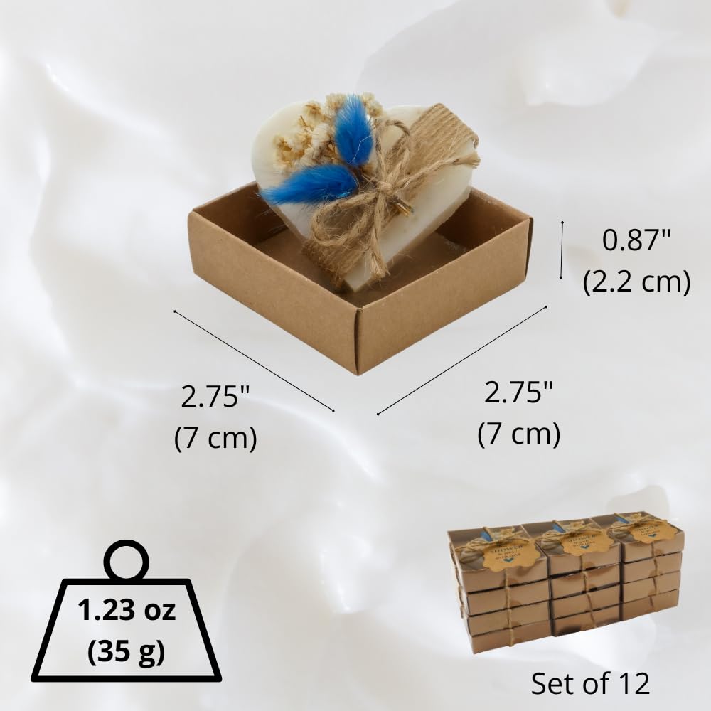 - What you get | 12 pieces of handmade heart-shaped soaps - each piece individually boxed. All soap favors come in craft boxes with transparent top, each white soap with a hard kraft tag. Perfect for your baby shower, gender reveal and all other party needs.