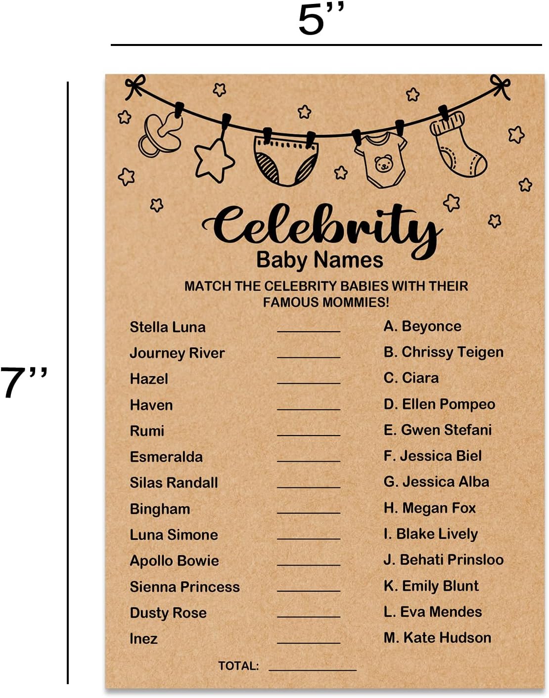 Baby Shower Game, Celebrity Baby Names, Baby Shower Party Games Supplies & Activities, Baby Shower Decorations, Baby Shower Ideas, Set of 30 Cards, Kraft