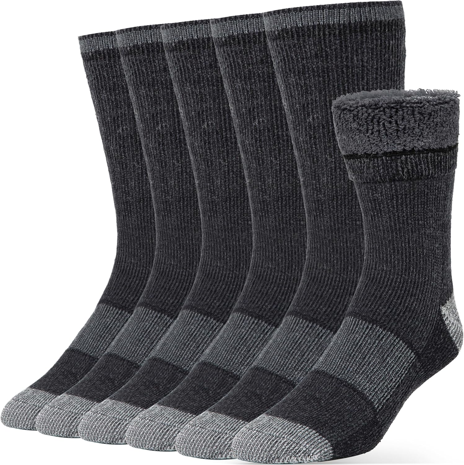 - ADVANCED MOISTURE CONTROL FIBRES AND BREATHABLE DESIGN - Designed with ventilation channels for free air circulation and increased breathability, these boot socks have superior moisture control fiber technology that instantly wicks away all moisture, fights odors, and keeps your feet dry. The unique wool blend of these warm socks is itch-free and regulates temperature to keep your feet warm from the cold winter.