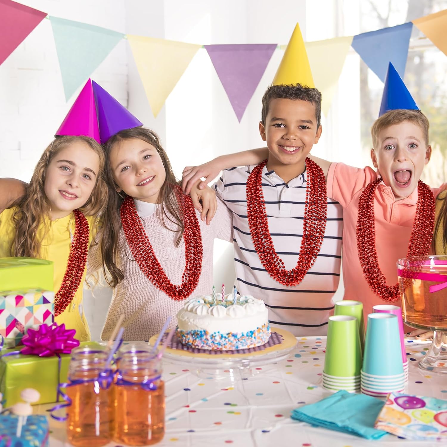 - Red Beads Necklaces: You will get 100 pcs red bead necklaces, bulk round beaded necklaces, a sufficient number to meet your home and party decoration needs at various holiday events. Ideal Mardi Gras decorations