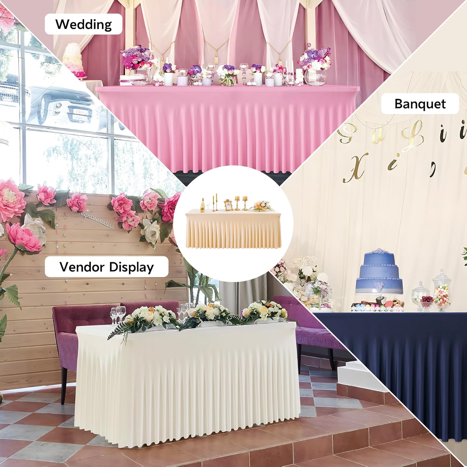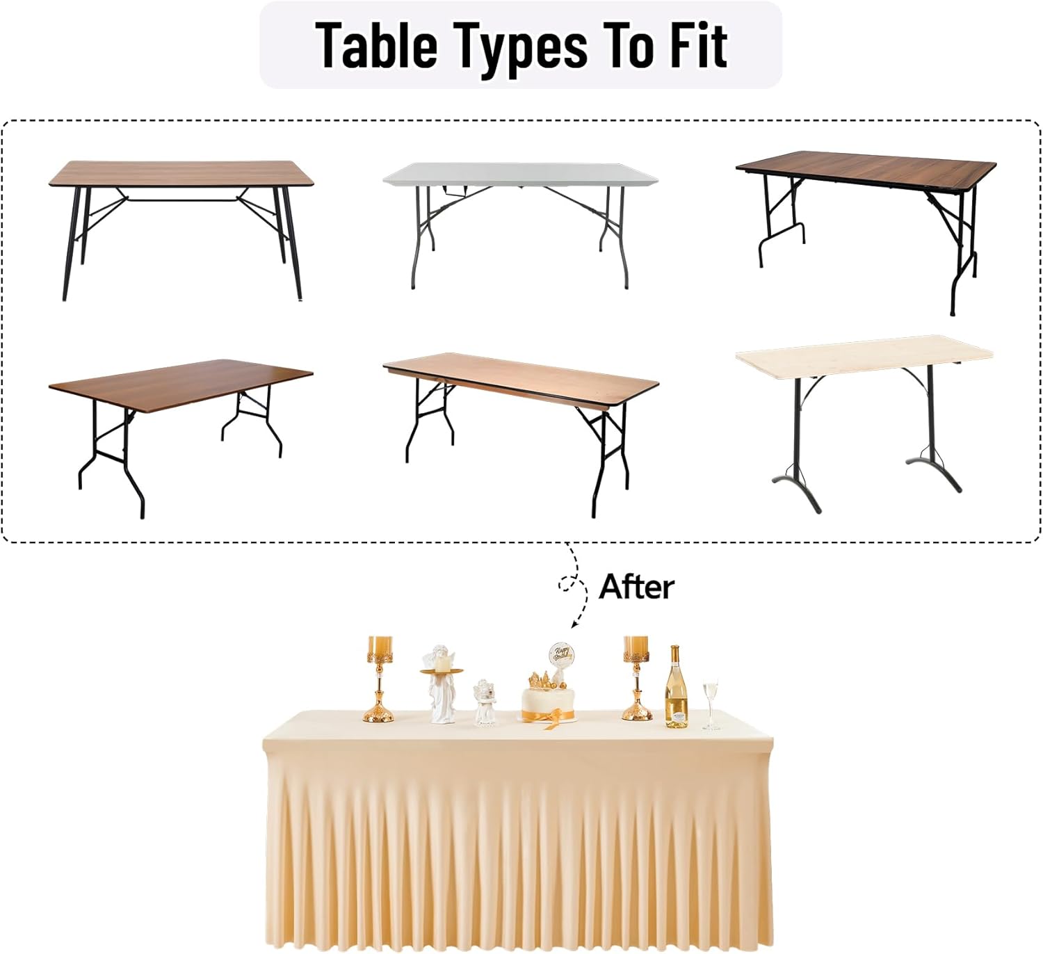 - 【Set of Spandex Rectangle Tablecloth】 You will receive 4 Pack Wavy champagne spandex table clothes for 6 foot rectangle tables. Manteles de mesa de tela para fiestas.