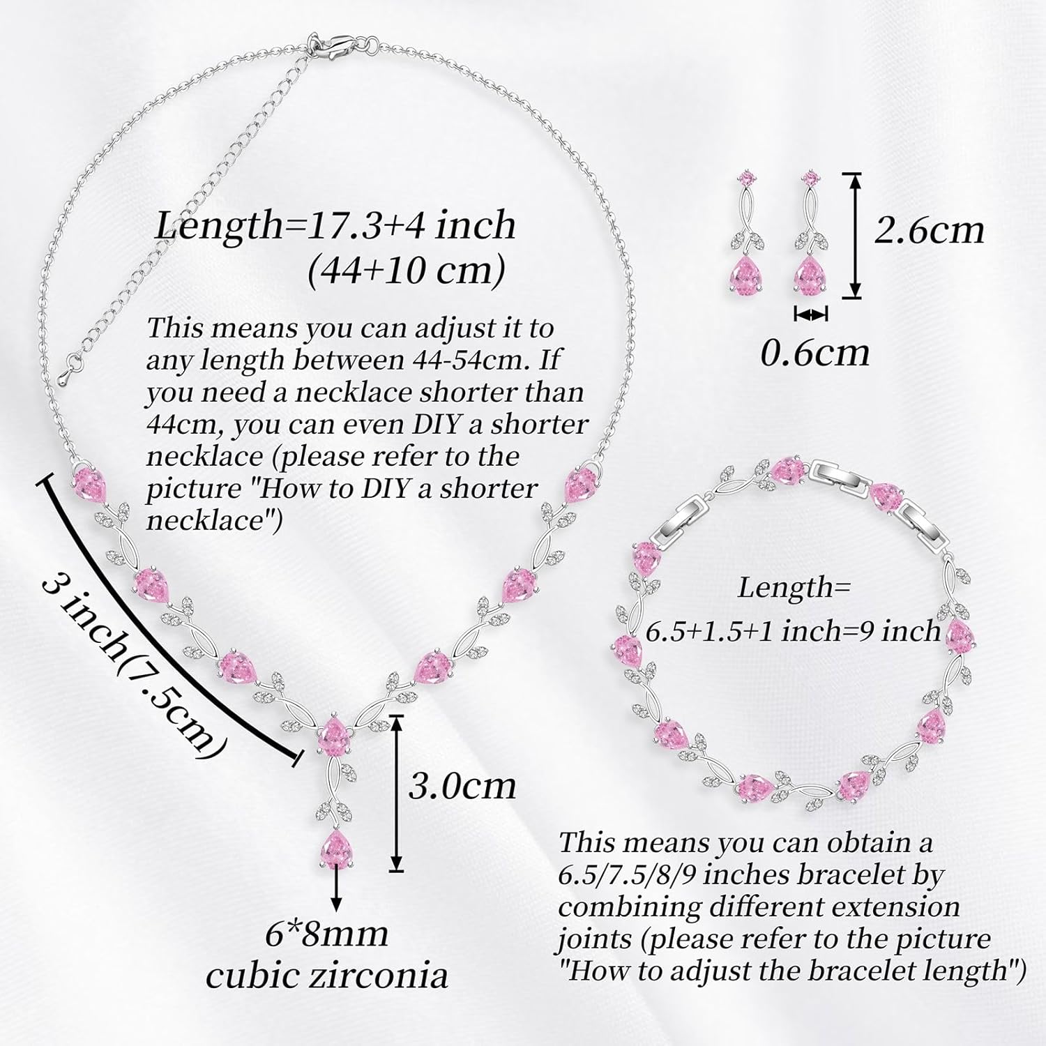 - ❤UNIQUE DESIGN❤: Each teardrop cubic zirconia has multiple precision cut planes, which will present an amazing luster under light.The designer use these pink and clear CZ to create a delicate pink rose jewelry set, which is sweet and sparkling, not too exaggerated, just as you decorate yourself with a series of pink flowers and wreaths.