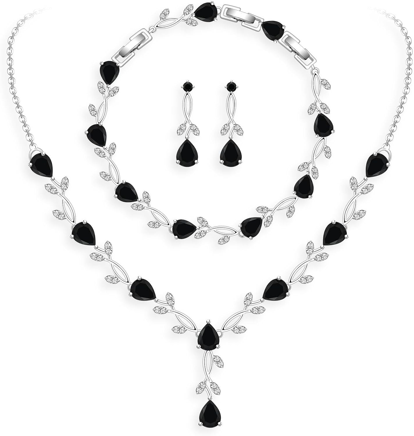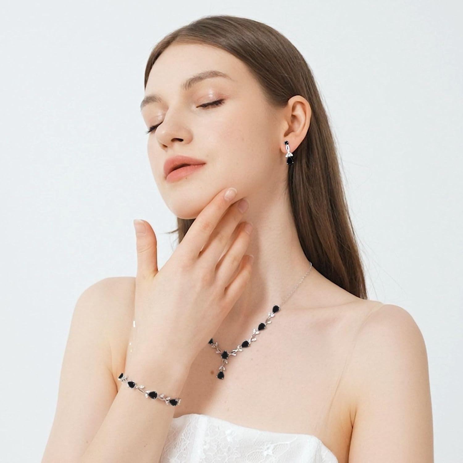 - ❤ELEGANT JEWELRY SET FOR WOMEN❤:The designer created this rose jewelry set with a series of black teardrop stones. It is elegant and noble, suitable for wedding party dance and daily wear, and can easily match with dark dresses.The precision cut cubic zirconia will sparkle brightly under the light.