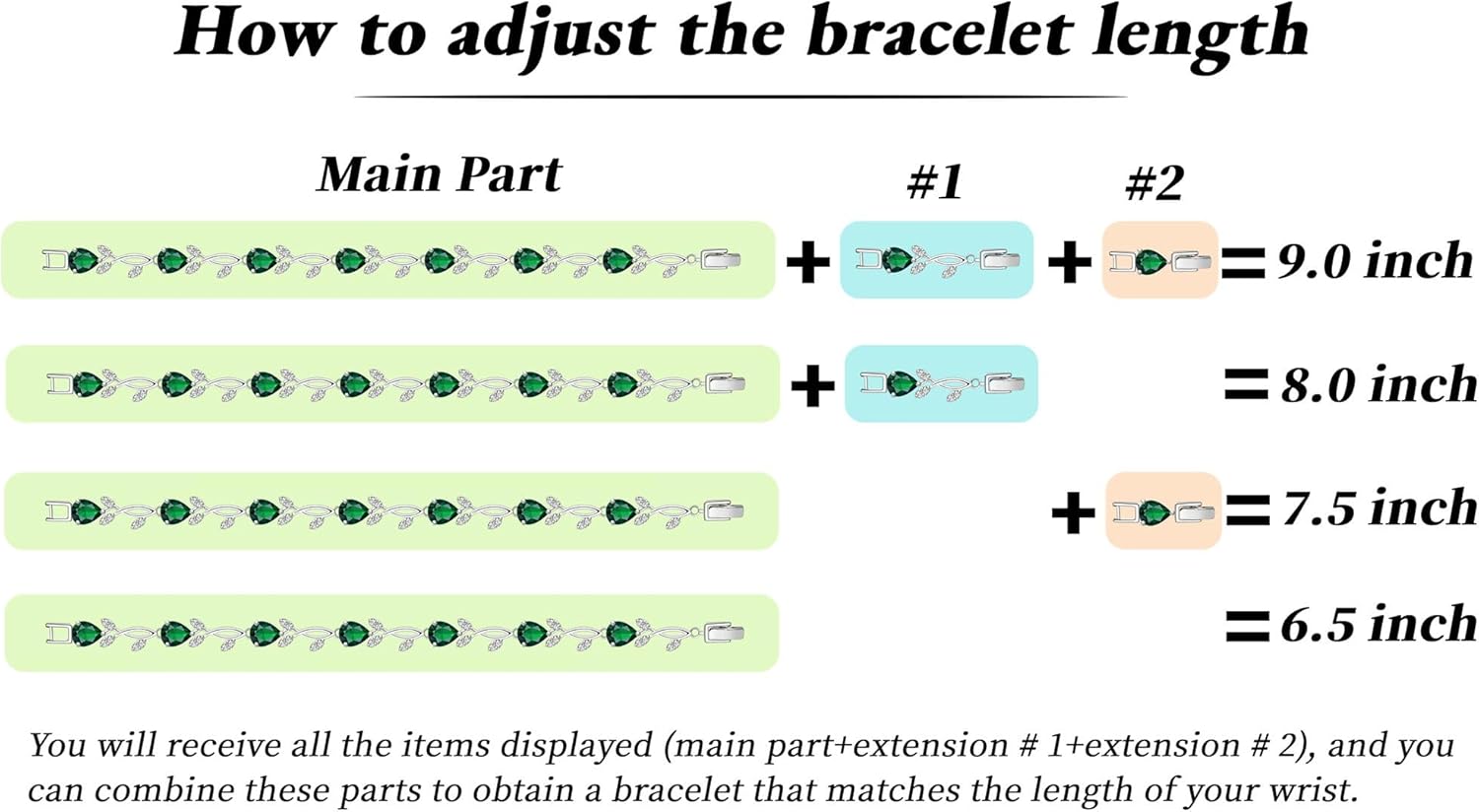 - ❤SIZE❤: The length of the necklace is 44+10cm, which means you can adjust it to any length between 44-54cm. If you need a necklace shorter than 44cm, you can even DIY a shorter necklace (please refer to the picture "How to DIY a shorter necklace")。The length of the bracelet is 6.5+1.5+1=9 inches, which means you can obtain a 6.5/7.5/8/9 inches bracelet by combining different extension joints (please refer to the picture "How to adjust the bracelet length")。