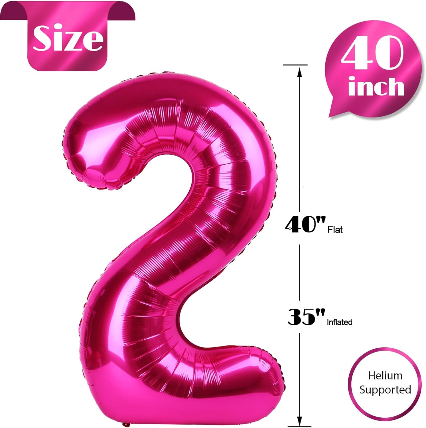 Hot Pink 2 Balloon, Number Balloons 40 Inch, 2nd Balloon Number Birthday Decorations, Second Two Birthday Party Supplies, Number 2 Balloon