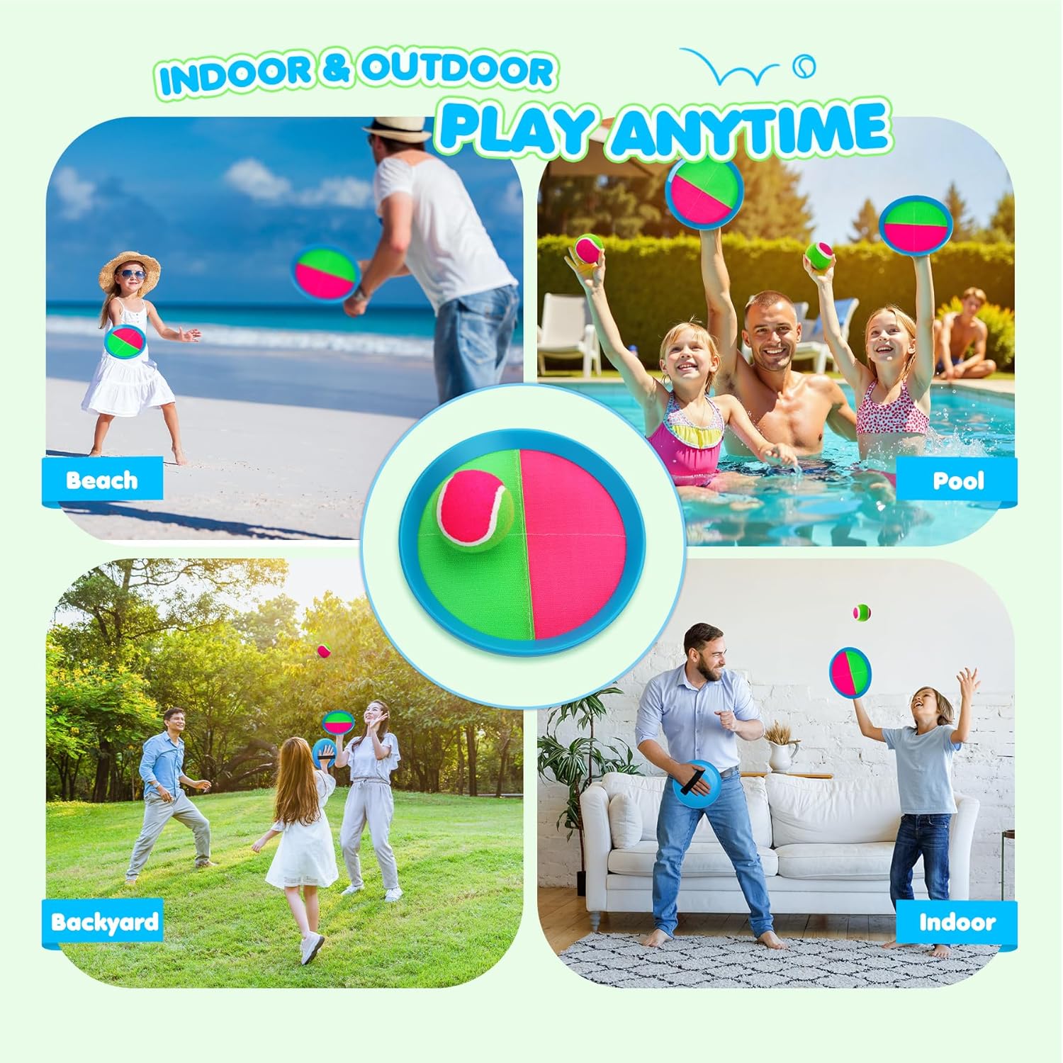 - 【Outdoor Fun】A toss and catch game that kids will relish! You can play this catch and ball game indoors, in the backyard, at the park, on the beach, or even in the pool. With these perfect outdoor toys for kids ages 3 and up, you can have fun with friends and family for hours.