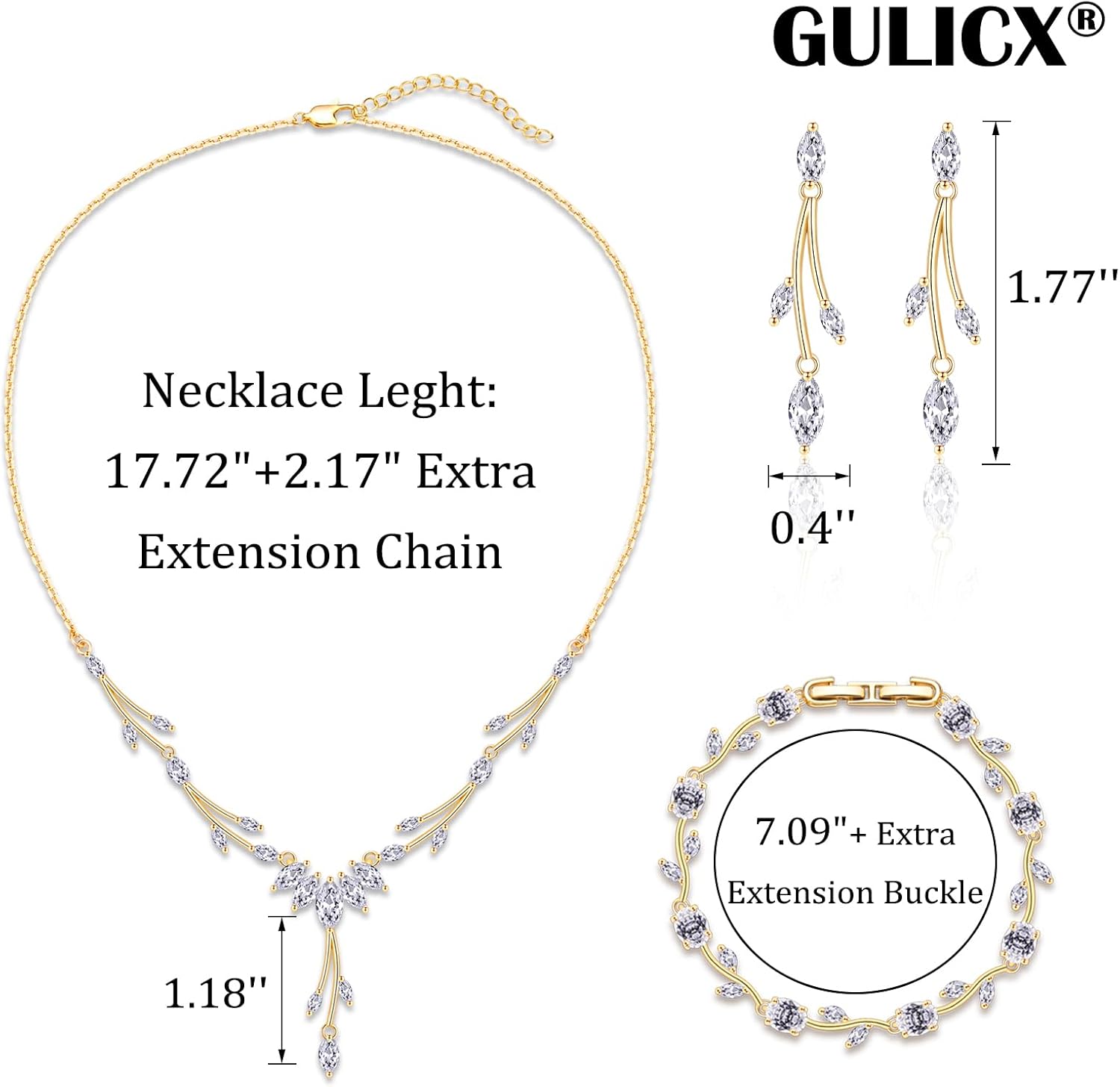GULICX Jewelry Set for Womens, Rhinestone Necklace and Earrings Bracelet Set, Wedding Party Prom Jewelry Set for Brides Bridesmaid