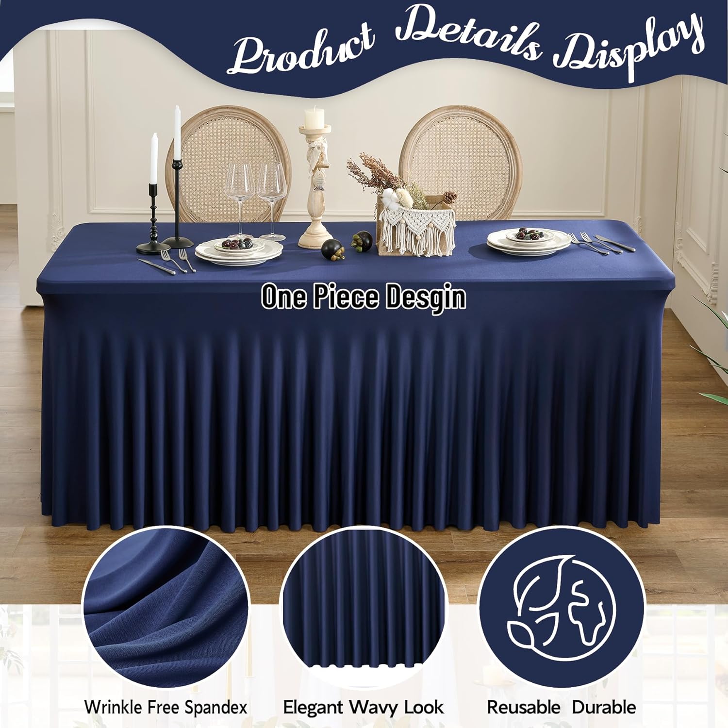 - 【Set of Spandex Rectangle Tablecloth】 You will receive 4 Pack Wavy navy blue spandex table clothes for 8 foot rectangle tables. Manteles de mesa de tela para fiestas.