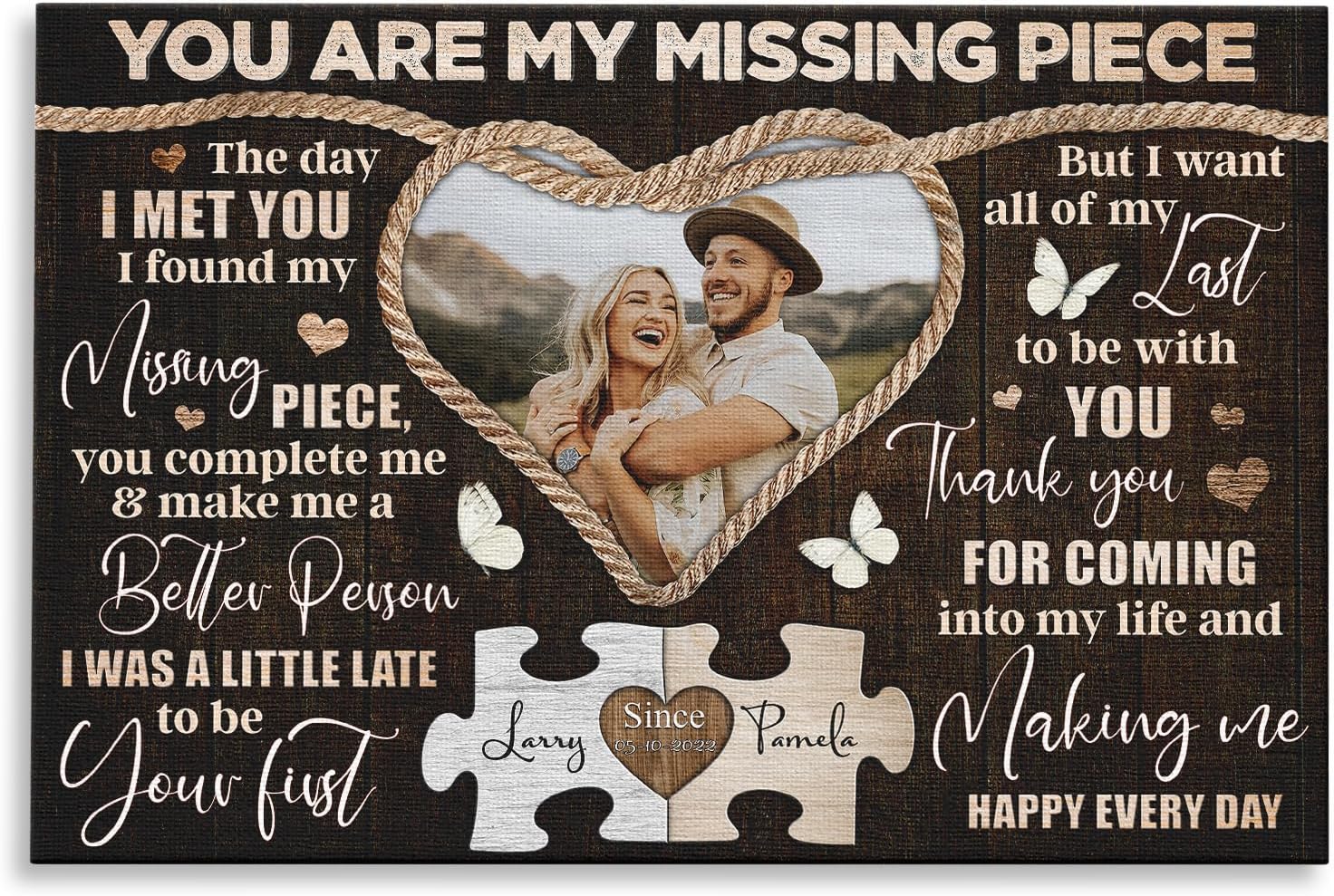 Dem Canvas Personalized Canvas Prints, Custom Photo And Name, You Are My Missing Piece, Wedding Gifts For Couple Anniversary Wedding Engagement Gift For Couples Canvas (12x08)
