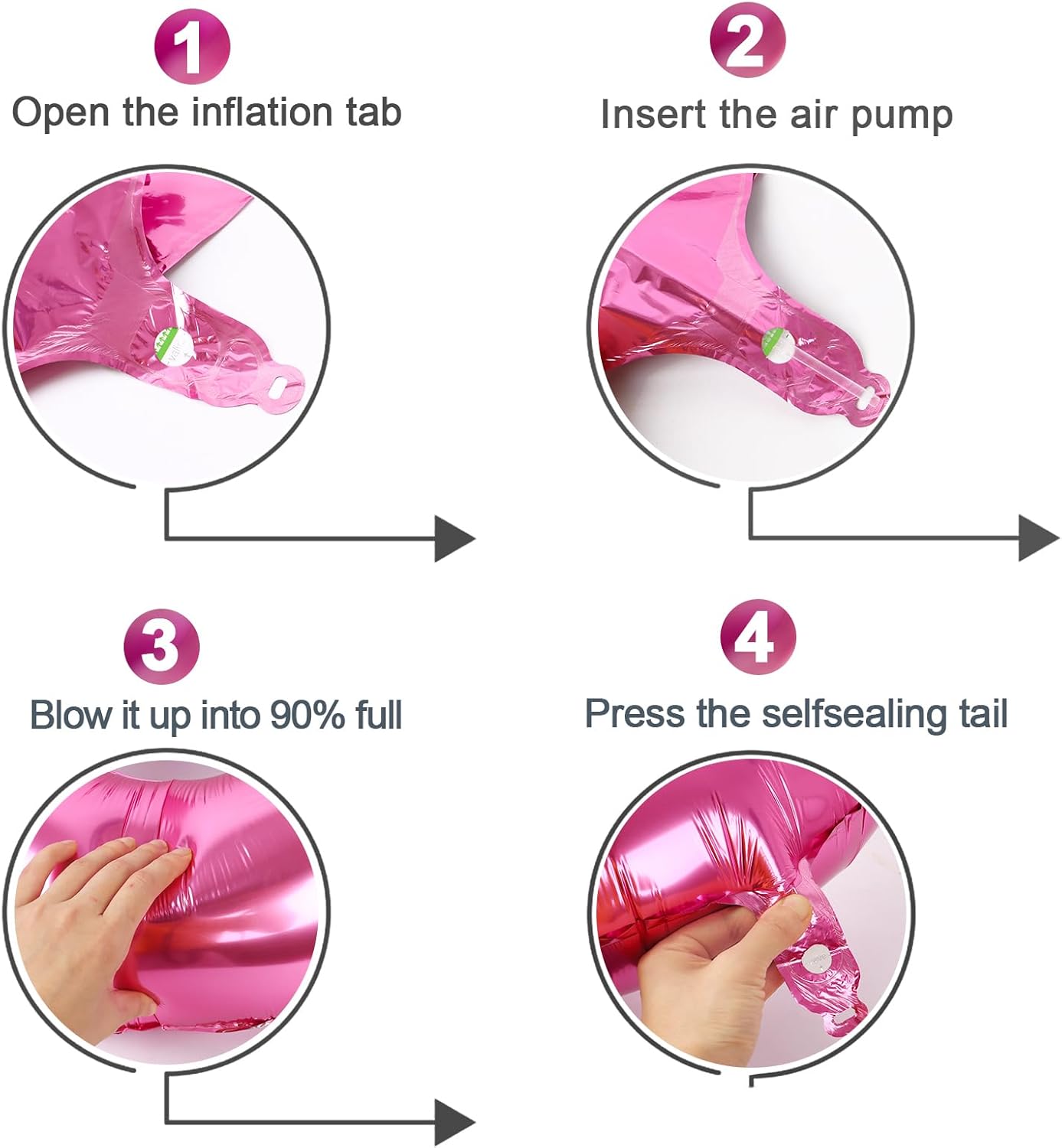 - 【Save Time and Effort with a Balloon that Self-Seals and Reusable】You could manually use your mouth on the straw with natural air to inflate or deflate the 4 number balloon. Just simply locate the end with arrow tab, pull the number 4 balloon open, and use the straw to blow air into the pink number balloon until it's 90% fully inflated. After the party, deflate the 4th birthday decorations for girl or by opening the tab and using a long straw to release the air.