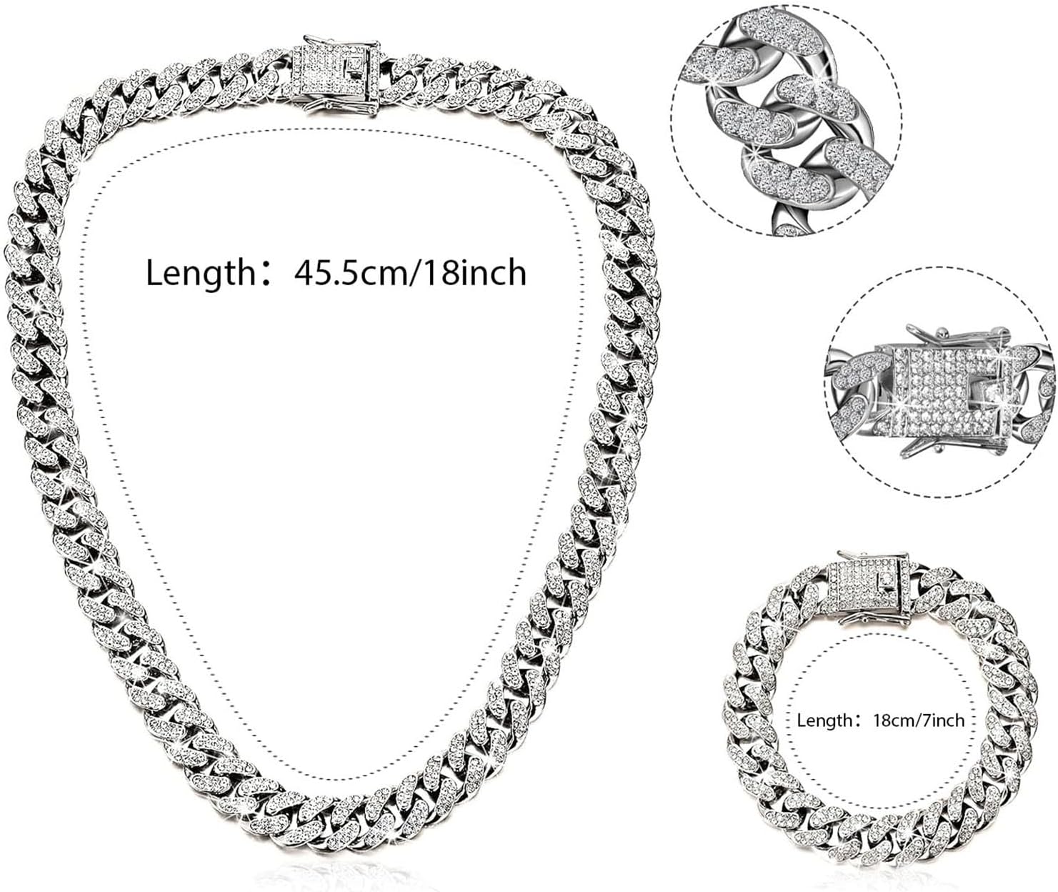 - ❤Diamond Cuban Set Design❤ -Elevate your style with our complete fashion set, including a link chain necklace, a hip hop link bracelet, and a pair of rhinestone earrings. This perfect combination not only enhances your overall look but also uplifts your mood, allowing you to effortlessly create various stunning outfits.
