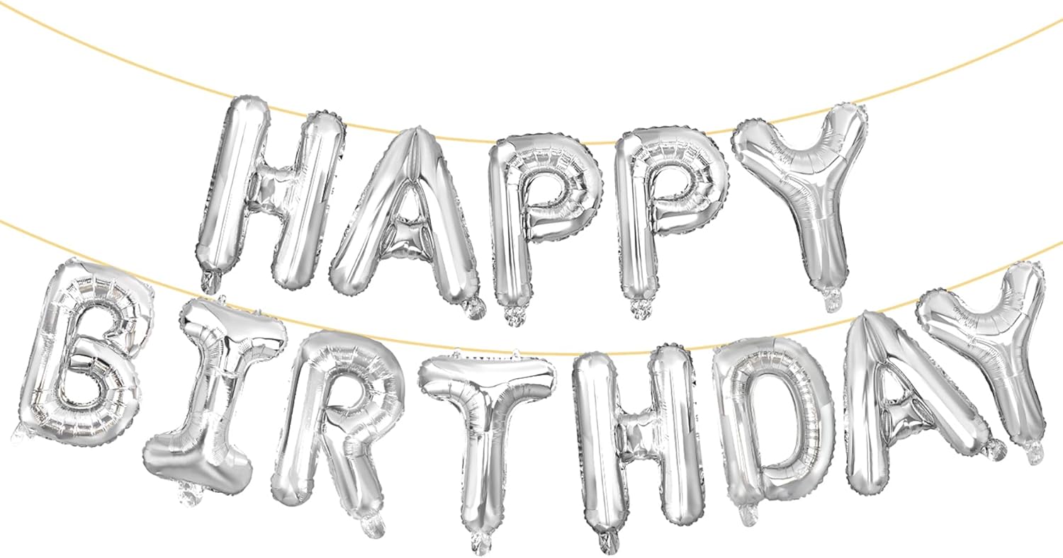 - Package Includes:Package come with silver Happy Birthday letter baloolls 1set,1pcs straw and 1 pcs ribbon.