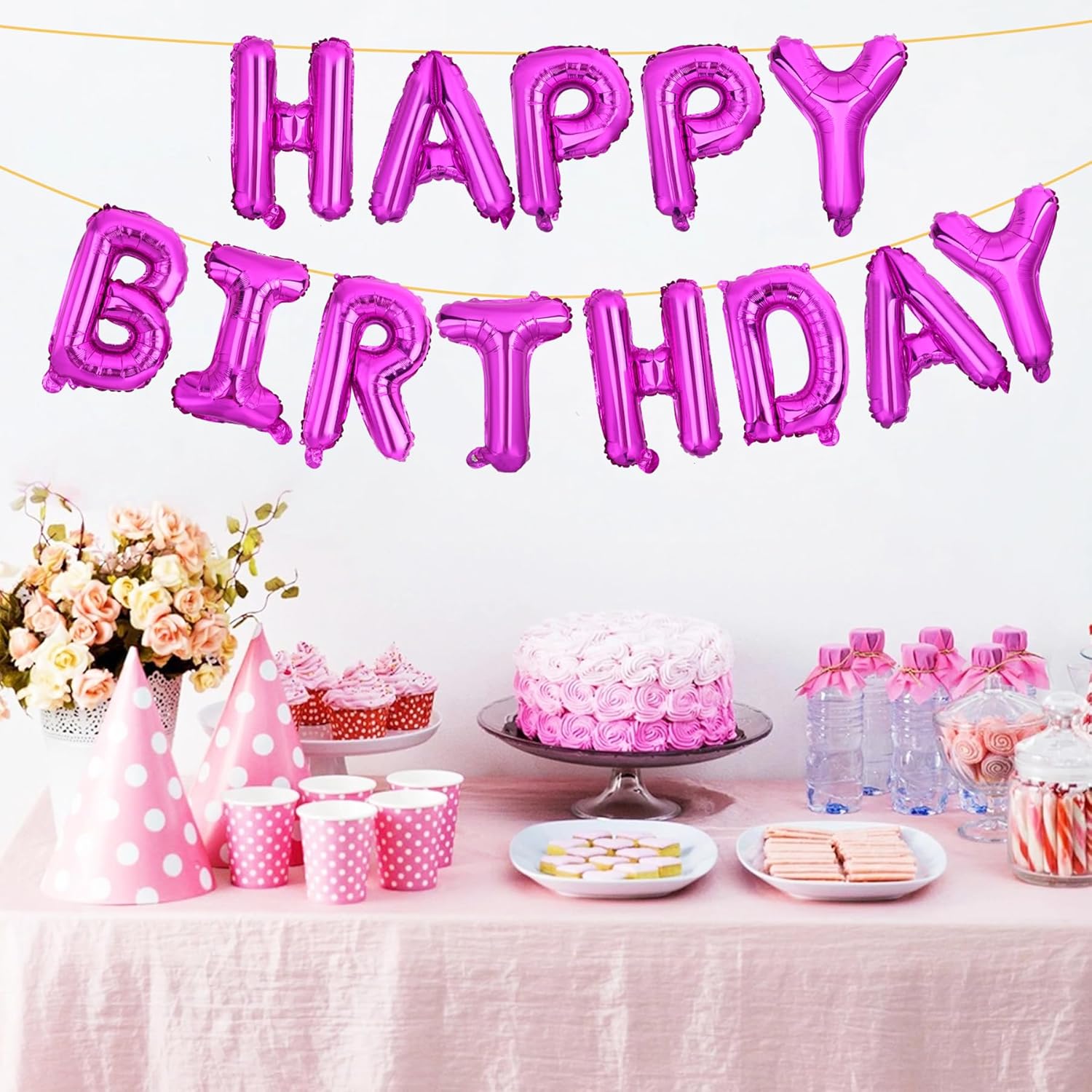 LIOZEOKUN Happy Birthday Balloon Letters 16 inch Mylar Foil Birthday Balloons Banner Sign for Birthday Party Decorations Supplies (Hot pink)