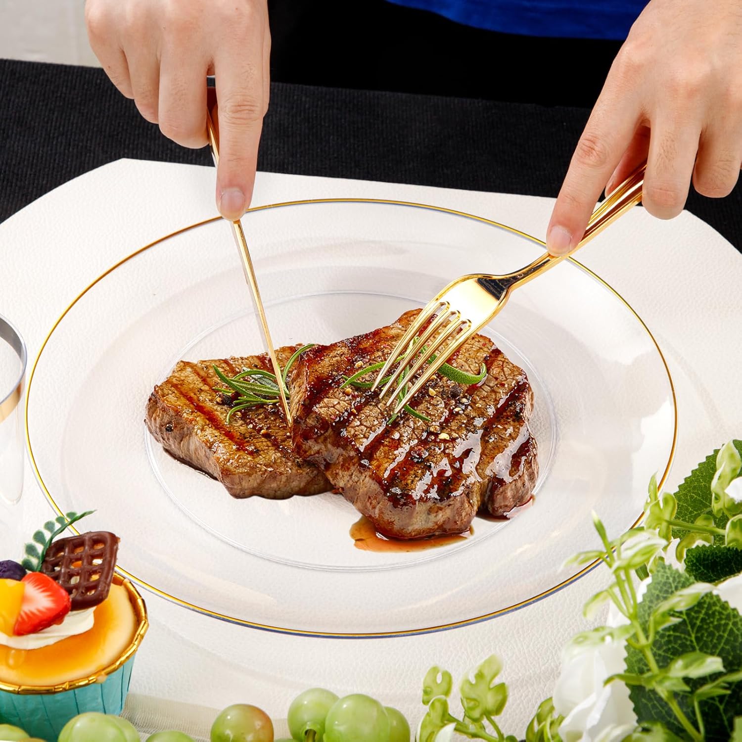 - No Need for Cleaning: With our clear plastic plates with gold rim, cleaning is easy. Simply discard it after use, eliminating the hassle of washing dishes and allowing you to focus on spending quality time with family and friends.