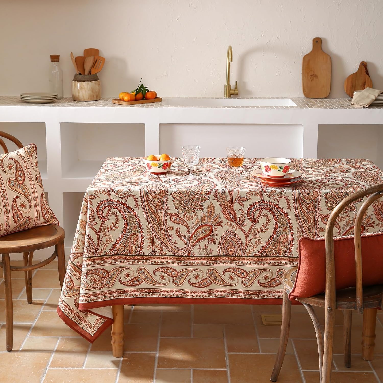 - Easy Care and More Options:Machine washable in cold water on a gentle cycle,tumble dry low,and hang to dry if possible.Do not bleach.This tablecloth pairs beautifully with our placemats,table runners,and pillow covers—visit the ISAENNE store for more home décor options.