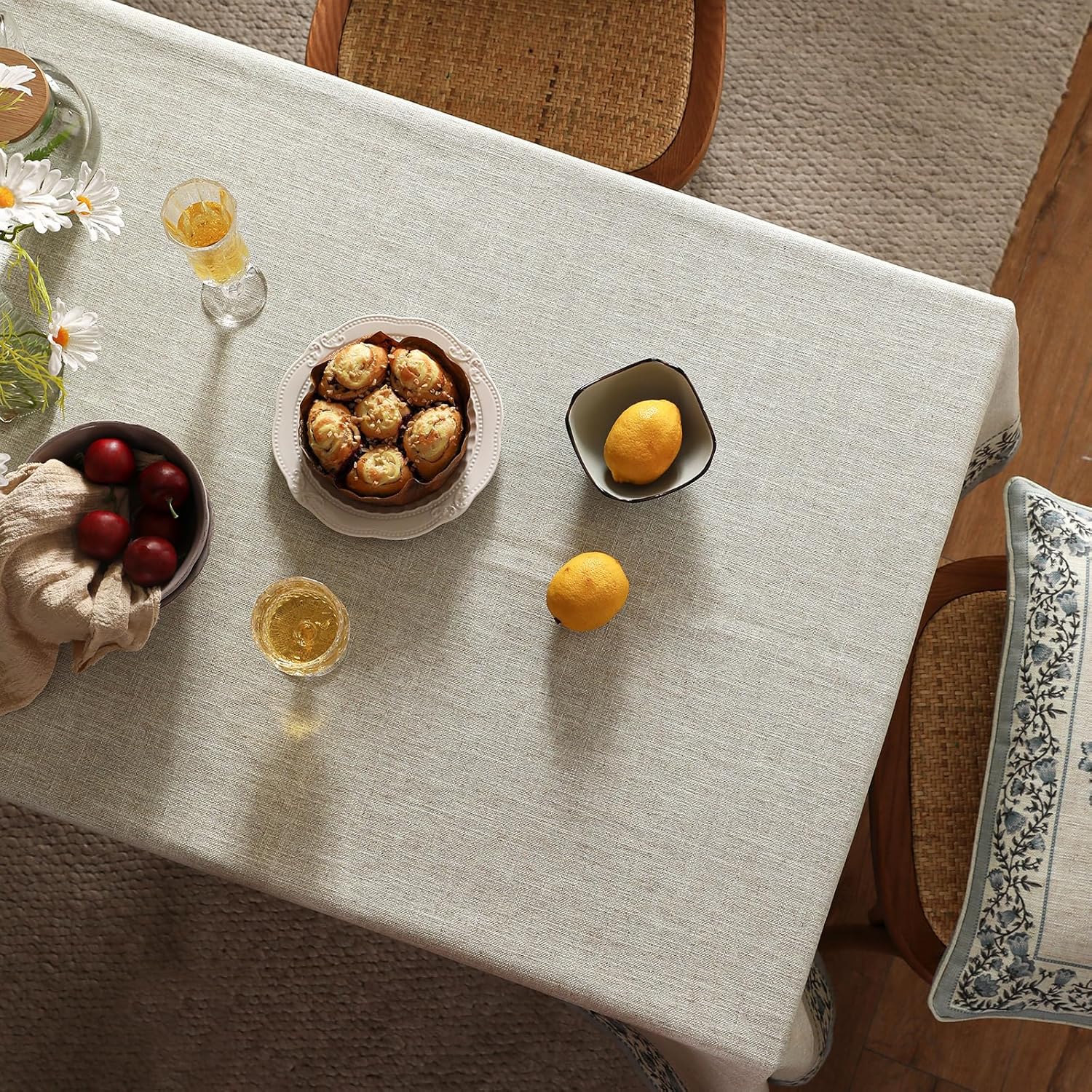 - Premium Fabric Blend:Crafted from 12% linen and 88% polyester,this tablecloth combines the natural texture of linen with the durability of polyester.The fabric is soft yet sturdy,offering a wrinkle-resistant and fade-resistant finish that keeps your dining area looking fresh and elegant