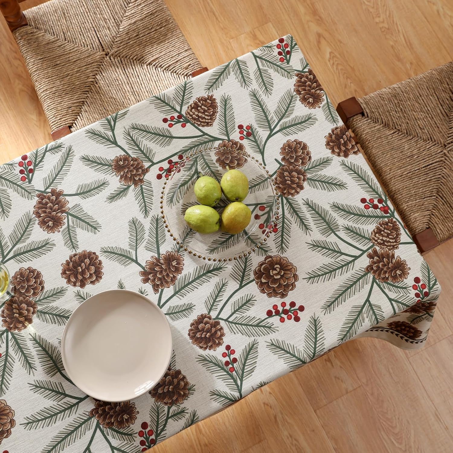 ISAENNE Designer Christmas Beige Linen Small Rectangular Tablecloth,Pinecones Pattern Indoor Tablecloths,Washable Decor Table Cloth for Dining Thanksgiving Kitchen Christmas,55"*71"-Carol B