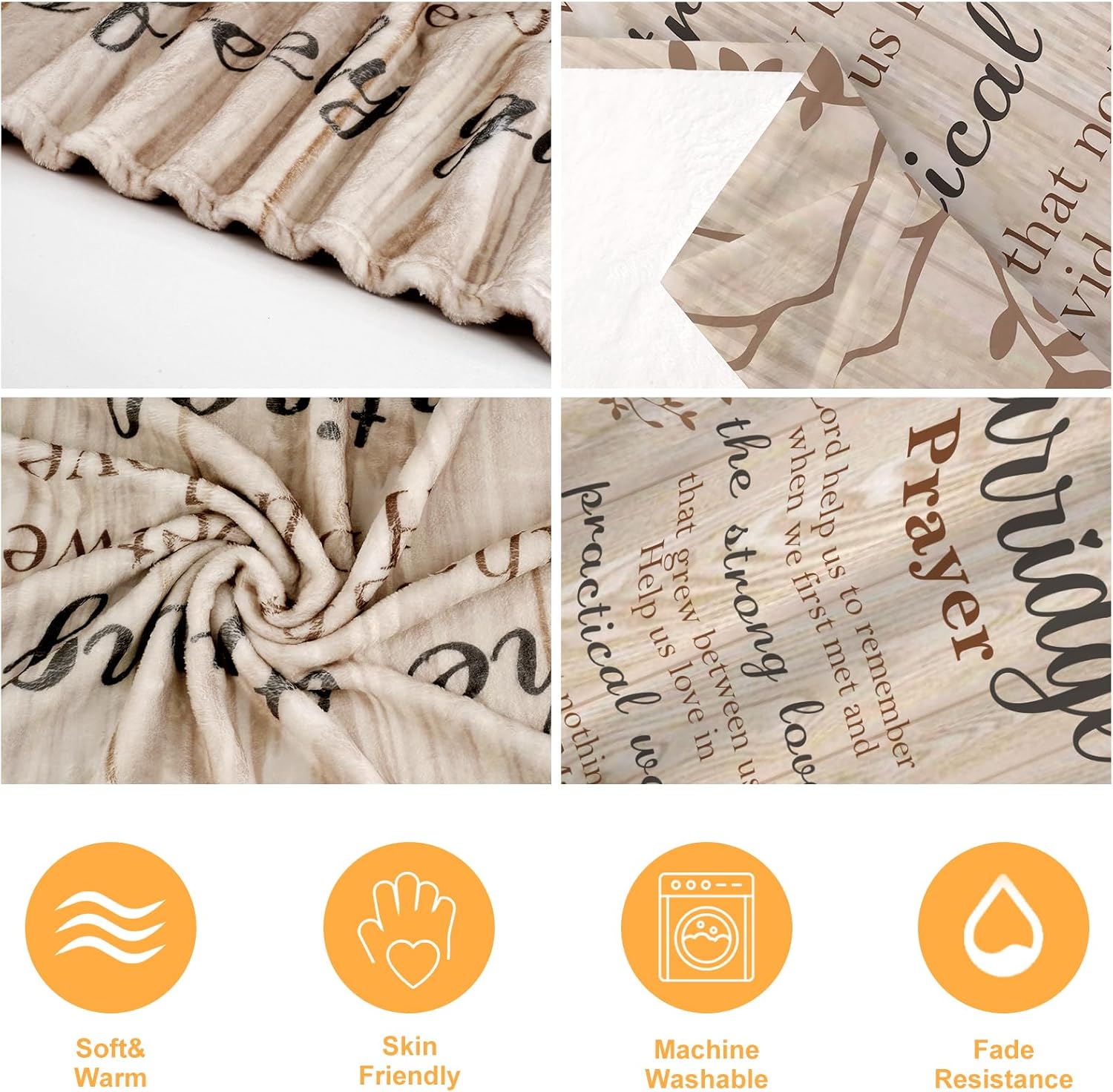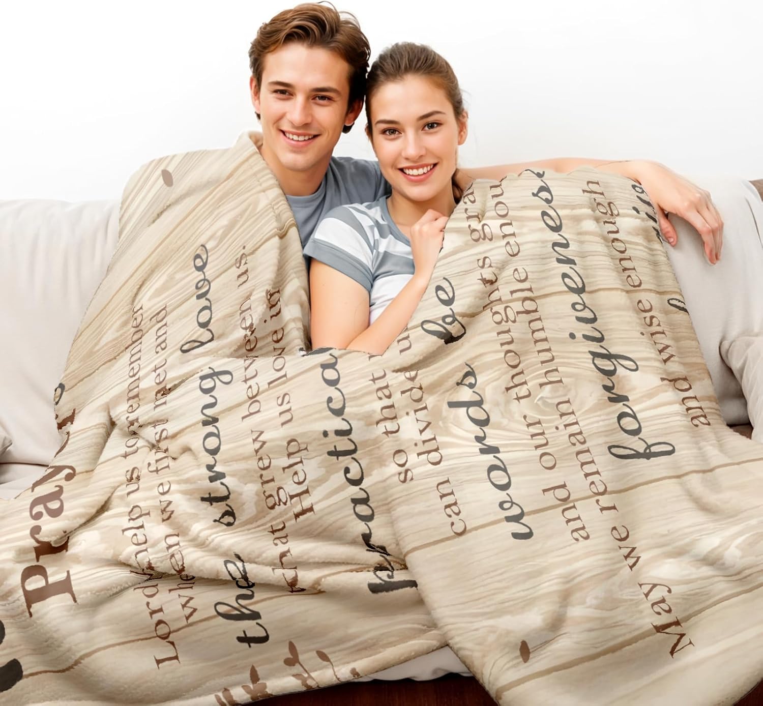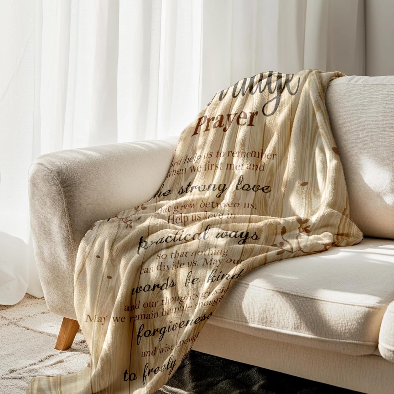 - ๐ Elegant Design for Every Home: Featuring a timeless Marriage Prayer design, this blanket adds a touch of elegance to any living space. Its neutral color and heartfelt message make it a versatile decor piece that complements any home style.