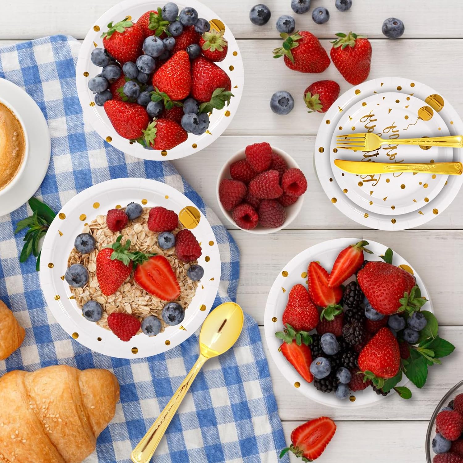 - COMPLETE PARTY PACKAGE: This set includes 201 pieces of birthday supplies like paper plates, cups, napkins, forks, knives and spoons to decorate and serve for a party of 25 guests.