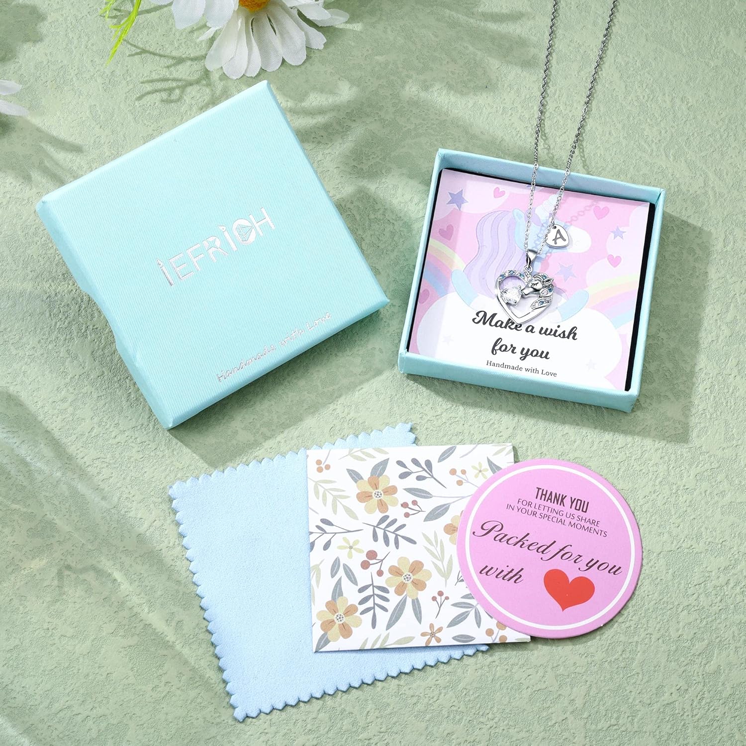 Christmas Gifts for Grandkids Kids - Colorful CZ Heart Initial Unicorn Necklace for Girls Jewelry Unicorn Birthday Gifts for Girls Stocking Stuffers for Kids