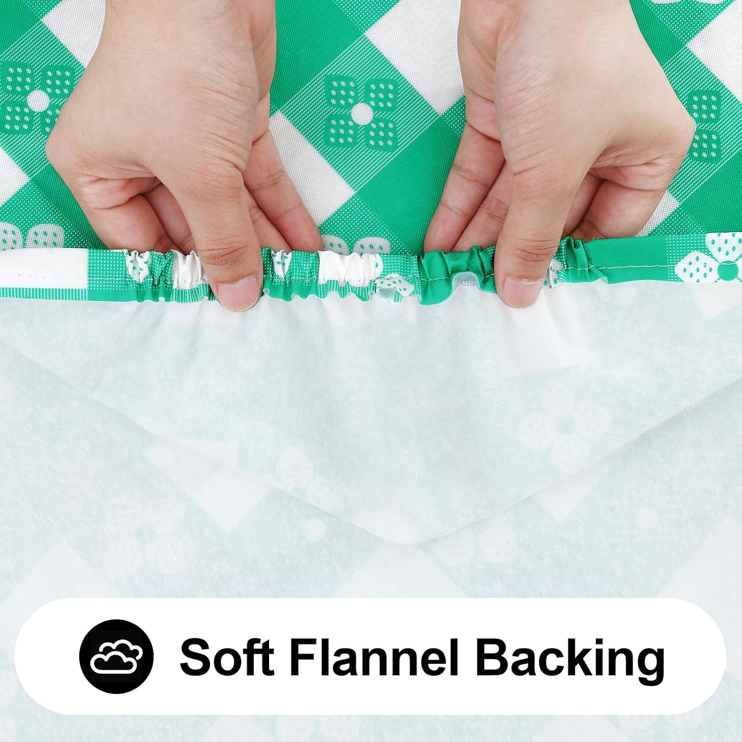 Rectangle Vinyl Table Cloth, Waterproof Elastic Fitted Tablecloth with Flannel Backing, Plastic Table Cover for Picnic, Camping, Outdoor (White & Green, 30"x96")
