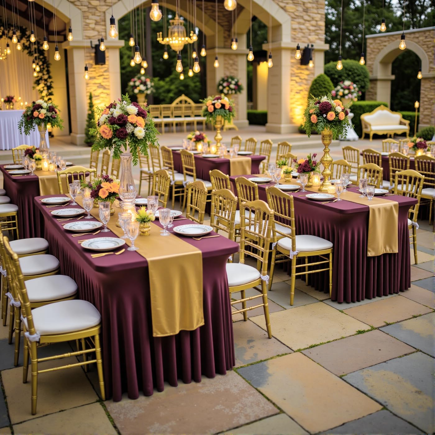 - 1. You will receive 2 Pack Burgundy wavy spandex table covers fitted for 6 foot rectangle tables. Manteles de mesa de tela para fiestas.