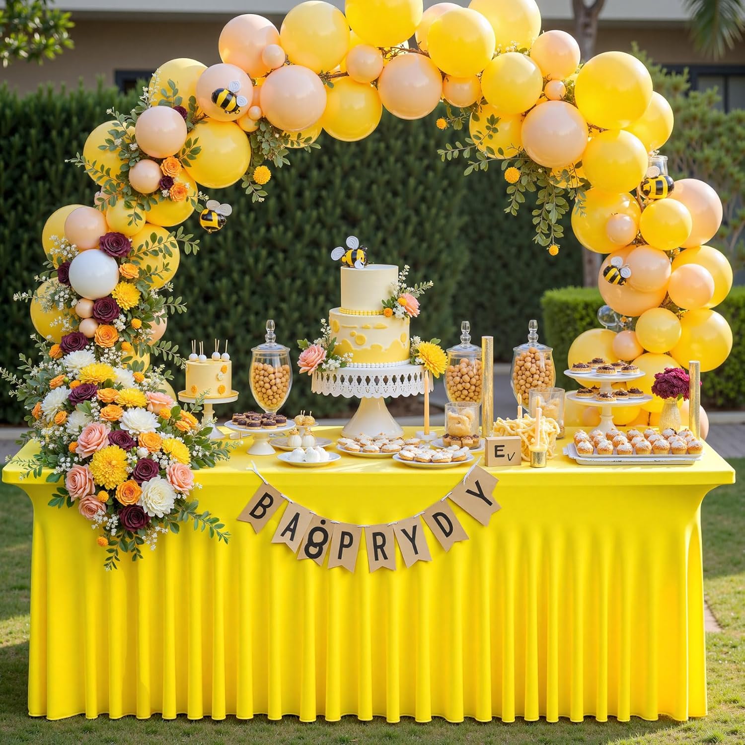 - 1. You will receive 4 Pack yellow wavy spandex table covers fitted for 8 foot rectangle tables. Manteles de mesa de tela para fiestas.
